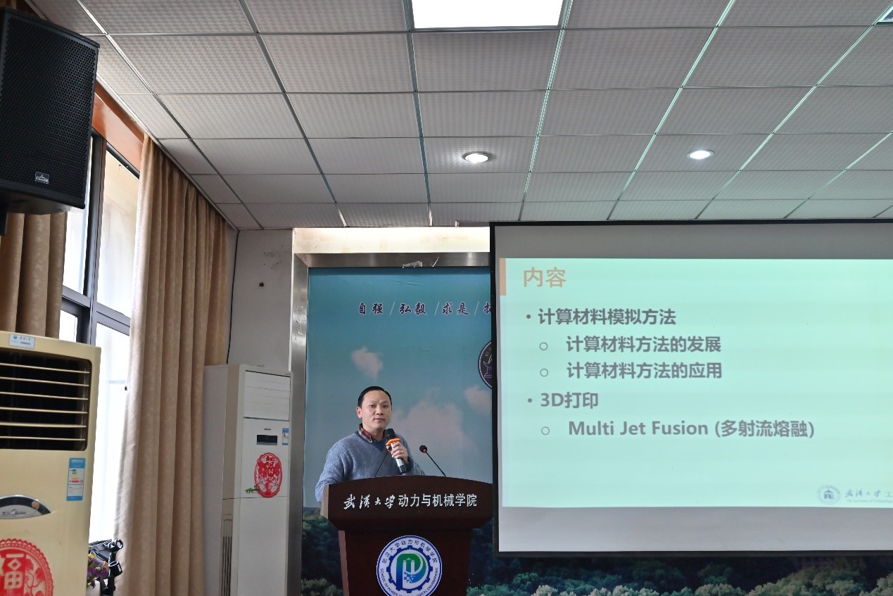 本网讯(通讯员:代洪伟 编辑:陈飏 审核:胡耀武、刘泽庭)12月23日12时,武汉大学工业科学研究院首席教授赵焱在我院学术报告厅举行“计算模拟在材料科学与工程中的应用”学术研讨会,院党委副书记匡松、兼职副院长胡耀武、我院和工业科学研究院部分师生参加了本次研讨会,本次研讨会由胡耀武主持。