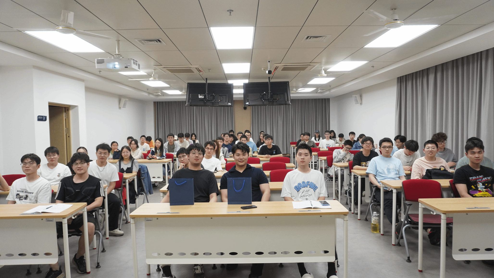 胡澳学长则用轻松幽默的语言回应了同学们提出的问题。他坦言,遇到科研瓶颈在所难免,建议大家理性评估后选择坚持或适度转向。他还特别提醒:“读研不仅是学术积累,也是自我成长的一部分”,建议大家在研究生阶段主动探索兴趣、广交朋友,度过一段充实有意义的时光。