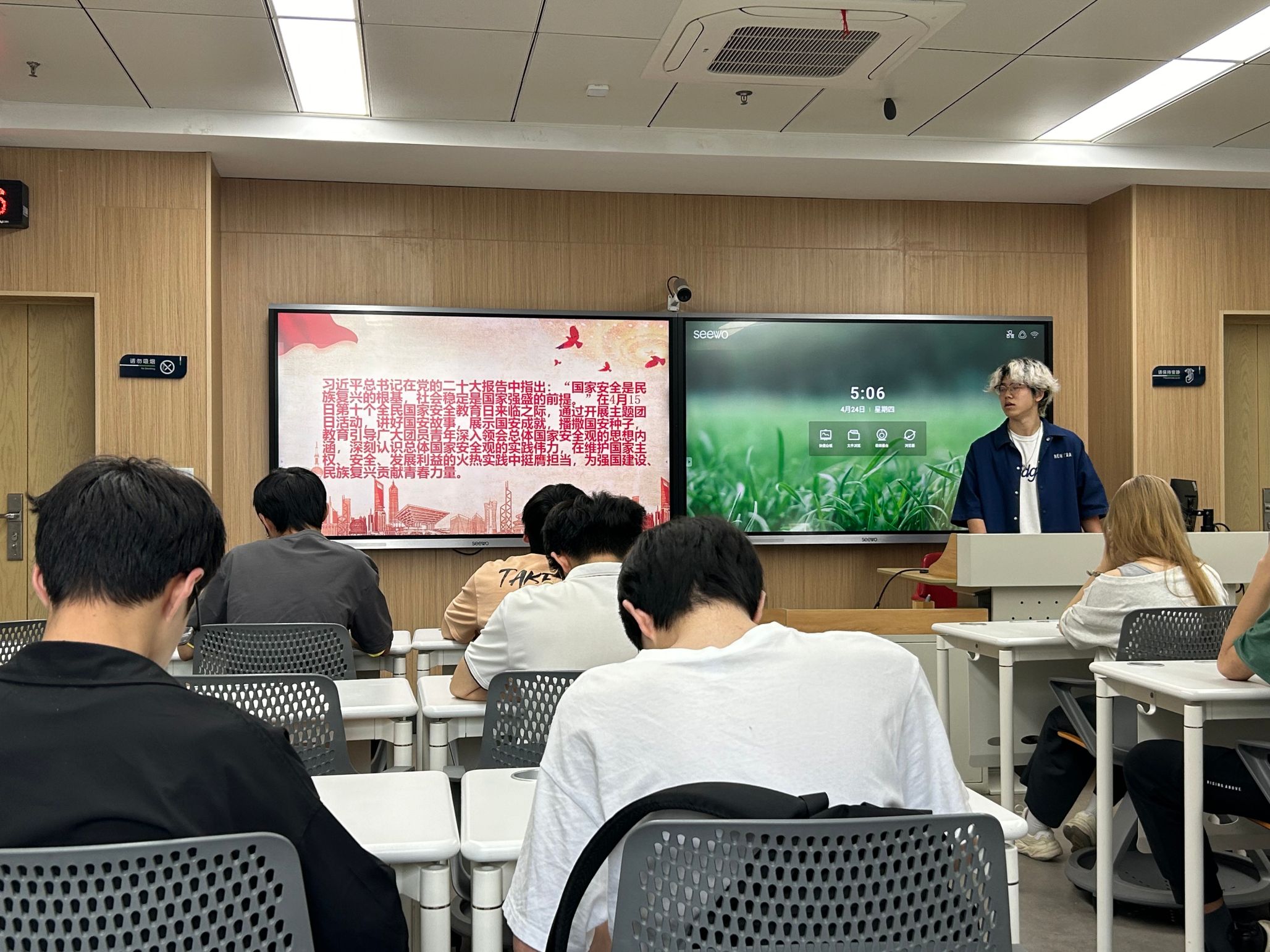 另一议题为 “国家安全,青春挺膺——践行青年使命,筑牢国家防线”。占子钦引用习近平总书记在党的二十大报告中“国家安全是民族复兴的根基,社会稳定是国家强盛的前提”这一重要论述,并结合4月15日的第十个全民国家安全教育日,精心设计了一系列丰富多彩的活动。通过生动讲述国安故事、精彩展示国安成就、广泛播撒国安种子,此次活动教育引导团员青年们深刻领会总体国家安全观的核心要义,充分认识其重大实践意义。活动还鼓励团员青年们在维护国家主权、安全、发展利益的伟大实践中挺身而出、担当作为,为强国建设和民族复兴的伟大事业贡献自己的青春力量。