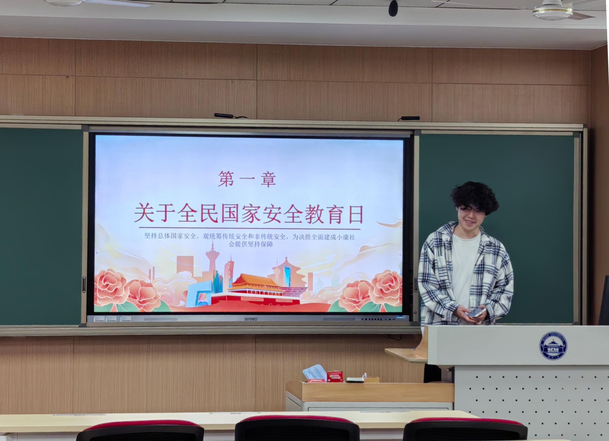 (通讯员:曾蓥蓥)2025年4月15日是第十个全民国家安全教育日,主题是“全民国家安全教育,走深走实十周年”。国家兴亡,匹夫有责。树立国家安全意识,自觉关心、维护国家安全是每个公民的基本义务。为了提高团员青年们的国家安全意识,2025年4月26日下午7点,动力与机械学院2024级智慧能源与智能制造类第九团支部在主教A206举办相关团日活动,由团支书杨江涛主持本次团日活动,带领团员青年们学习国家安全相关内容。