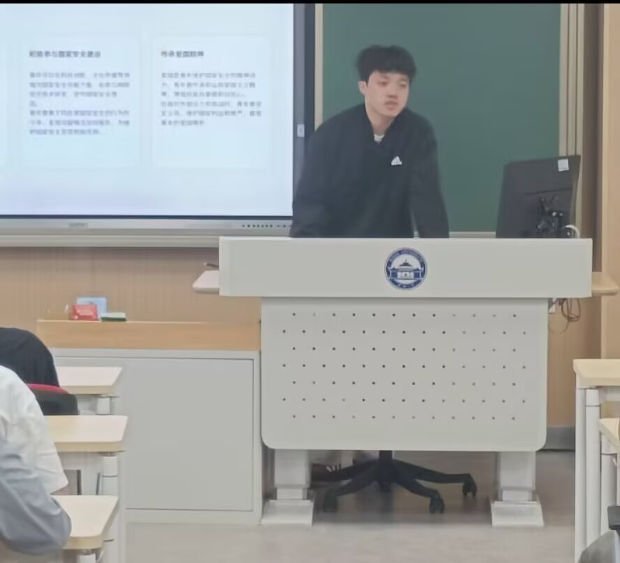 活动伊始,谢翰瑜深入剖析国家安全议题。在“国家安全的重要性”板块,谢翰瑜详细阐释国家安全的定义与内涵,涵盖政治、军事、经济等多领域,点明国家安全是国家发展前提,与个人生活紧密相连。