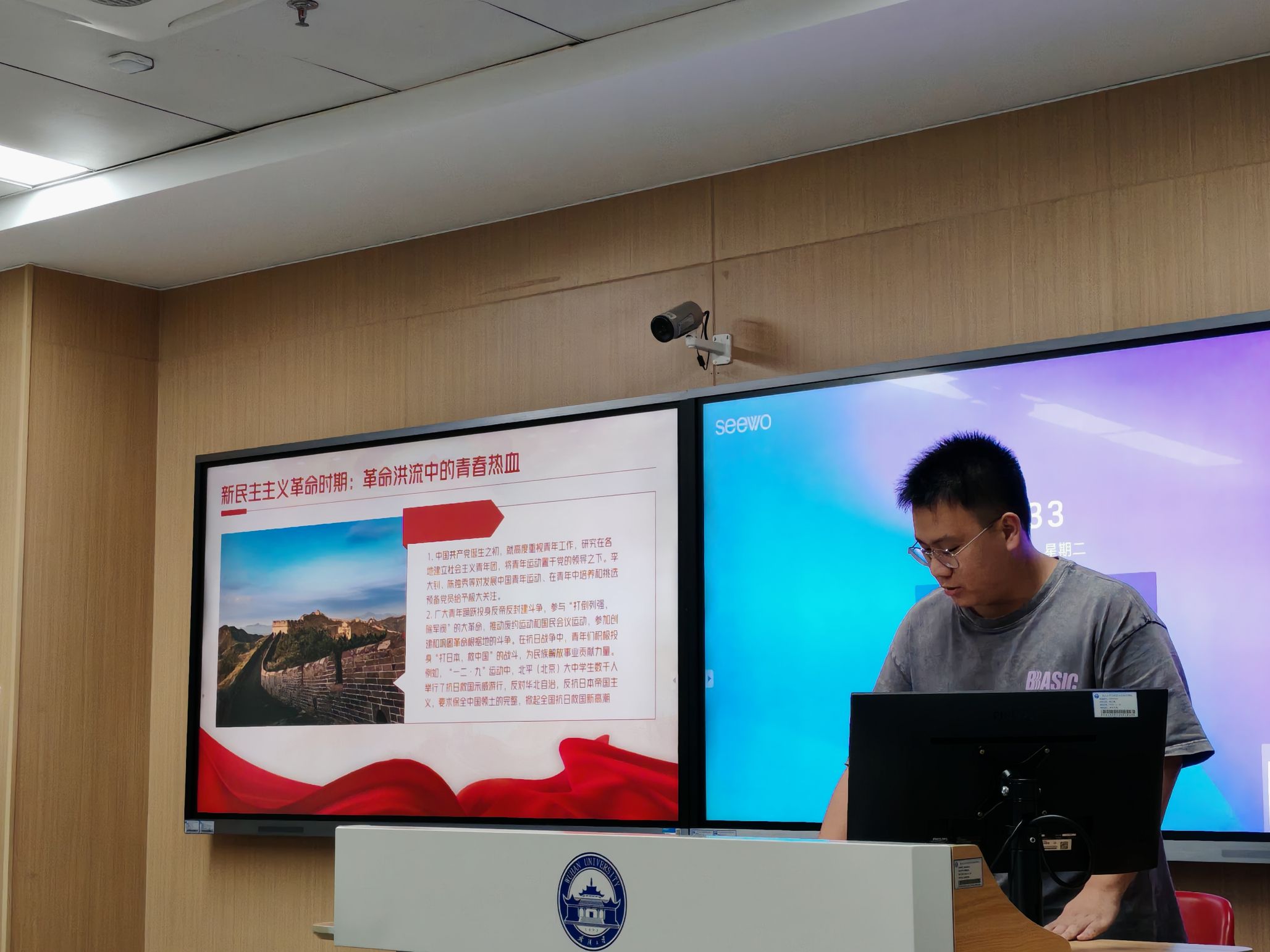 (文字记者:闫杨天 图片记者:陈泓冰)五四精神作为中华民族的宝贵精神财富,激励着一代又一代的中国青年在时代的浪潮中奋勇前行。为深入学习和传承五四精神,引导青年团员青年坚定理想信念,展现青春担当,动力与机械学院2024级智慧能源与智能制造第一团支部于2025年5月22日在工学部主教举办了主题为 “传承五四薪火,激扬时代担当” 的团日活动。团支书陈泓冰主持了此次活动,全体团员青年准时出席,在青春的激昂旋律中共同追寻五四精神的深刻内涵。