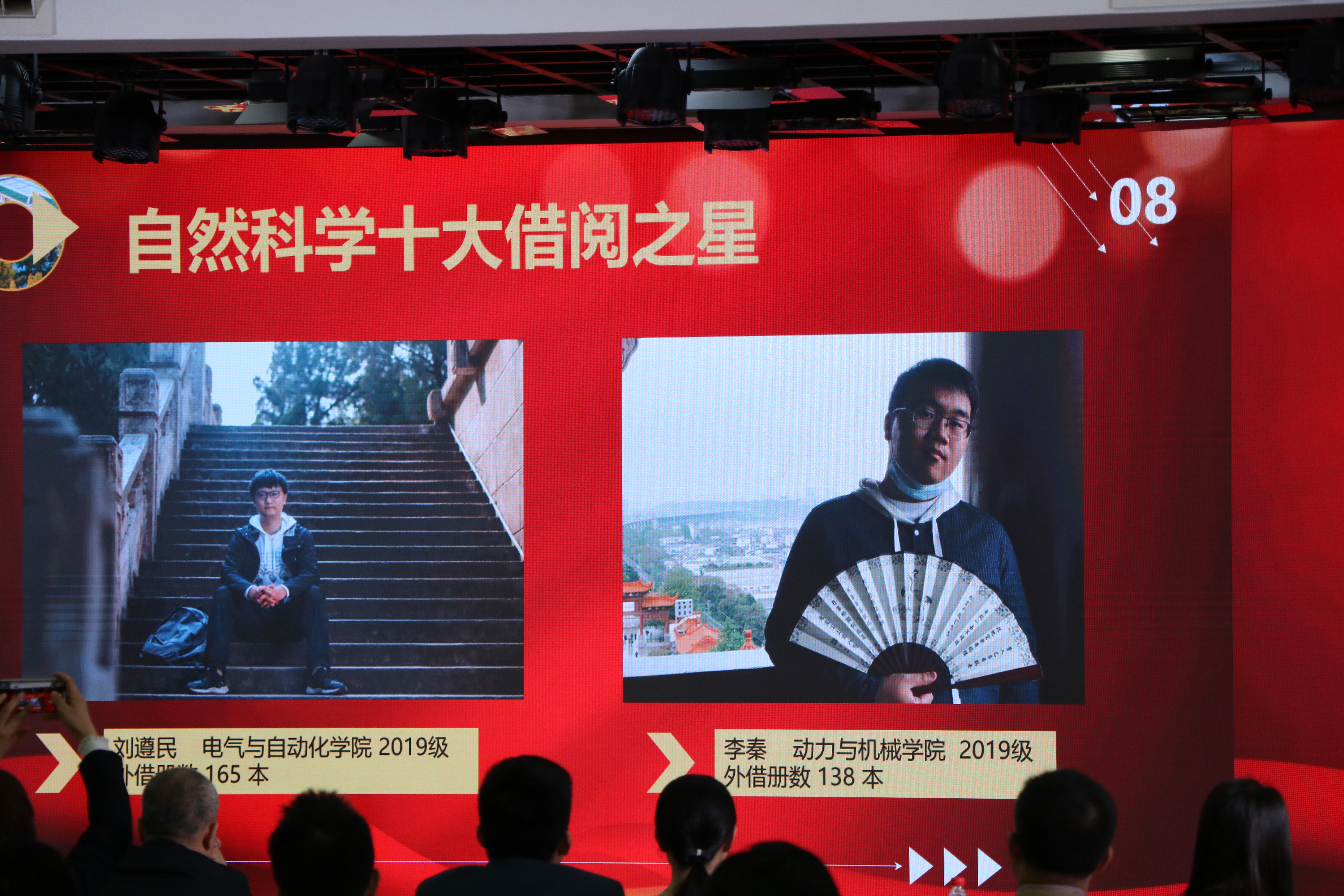开幕式上学校对评选出的“武汉大学2021年十大书香学院”进行颁奖,我院以外借量5663册、外借占比41.70%的成绩获评此荣誉称号。窦贤康院士亲自为各学院颁奖,我院党委书记孙萍代表学院上台领奖。同时,我院2019级本科生李秦获“自然科学十大借阅之星”荣誉称号。