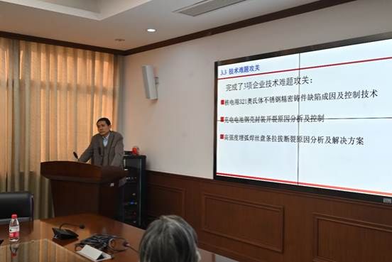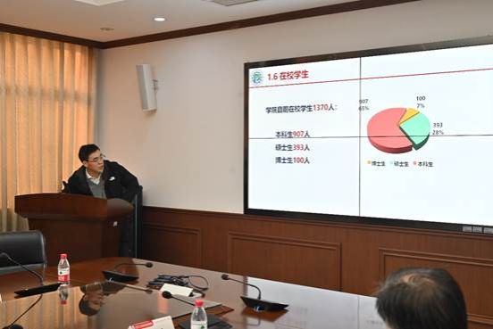 副院长康勇对与会嘉宾进行了介绍,科学技术发展研究院调研员赵龙飞对与会嘉宾来我院调研表示热烈的欢迎和衷心的感谢。随后,副院长康勇从学院基本概况、近五年发展成效、面临机遇与挑战和高质量发展思考四个方面对我院科研工作及产学研合作情况进行了详细说明。