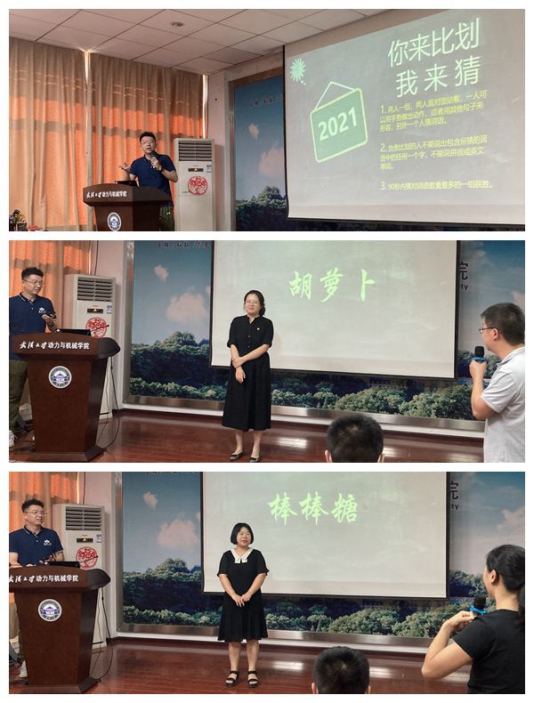 为了活跃气氛,讲座中场休息时,校工会刘仲沛、吴东海两位老师还组织现场听讲座的教职工分组做了“你来比划我来猜”小游戏,并为游戏获胜组颁发了小奖品。