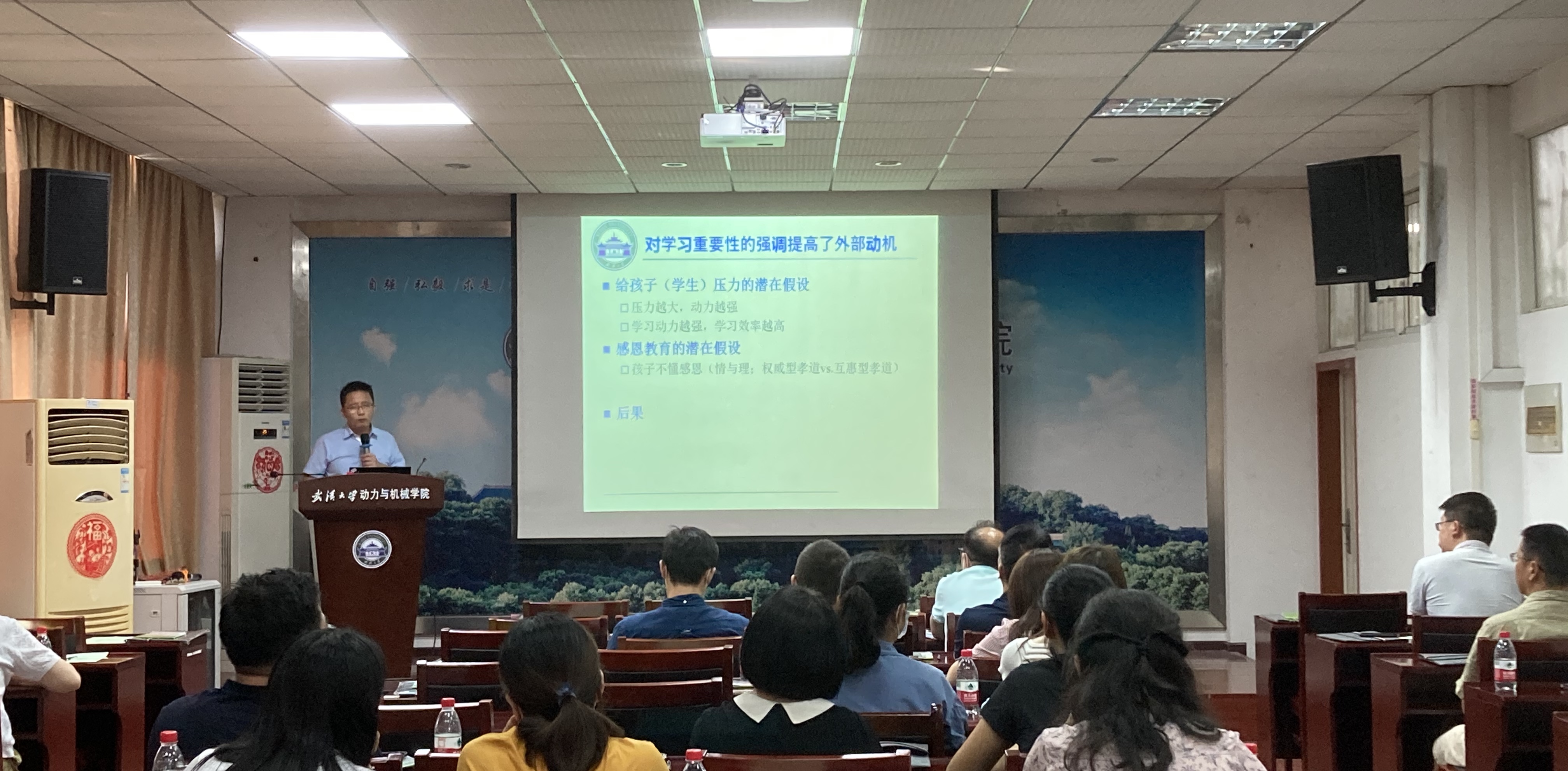 孩子健康成长成才是每一个家庭的期待,如何用正确的方法对孩子进行引导和教育是每个家庭的急难愁盼!根据校工会送培训到基层工作安排,2021年9月16日下午,由校工会主办、动力与机械学院承办的“高校教师如何提高学生(孩子)的学习动机和心理健康水平”讲座在动机学院学术报告厅成功举办。主讲人武汉大学哲学学院心理学系白宝玉副教授结合自己作为高校老师和心理咨询师的经历和感悟,为大家分享了孩子心理健康教育的宝贵经验。讲座由学院工会副主席孙林歌老师主持,学院30余位教职工和部分学生到场聆听了讲座。举办此次讲座的目的在于为确实解决教职工关心的实际问题,提高孩子(学生)的学习动机和心理健康水平,激发团队(自己)持久的内在工作动力,了解学生过去的心路历程和当前的心理特点, 理解教师自身压力来源,提升自身幸福感。