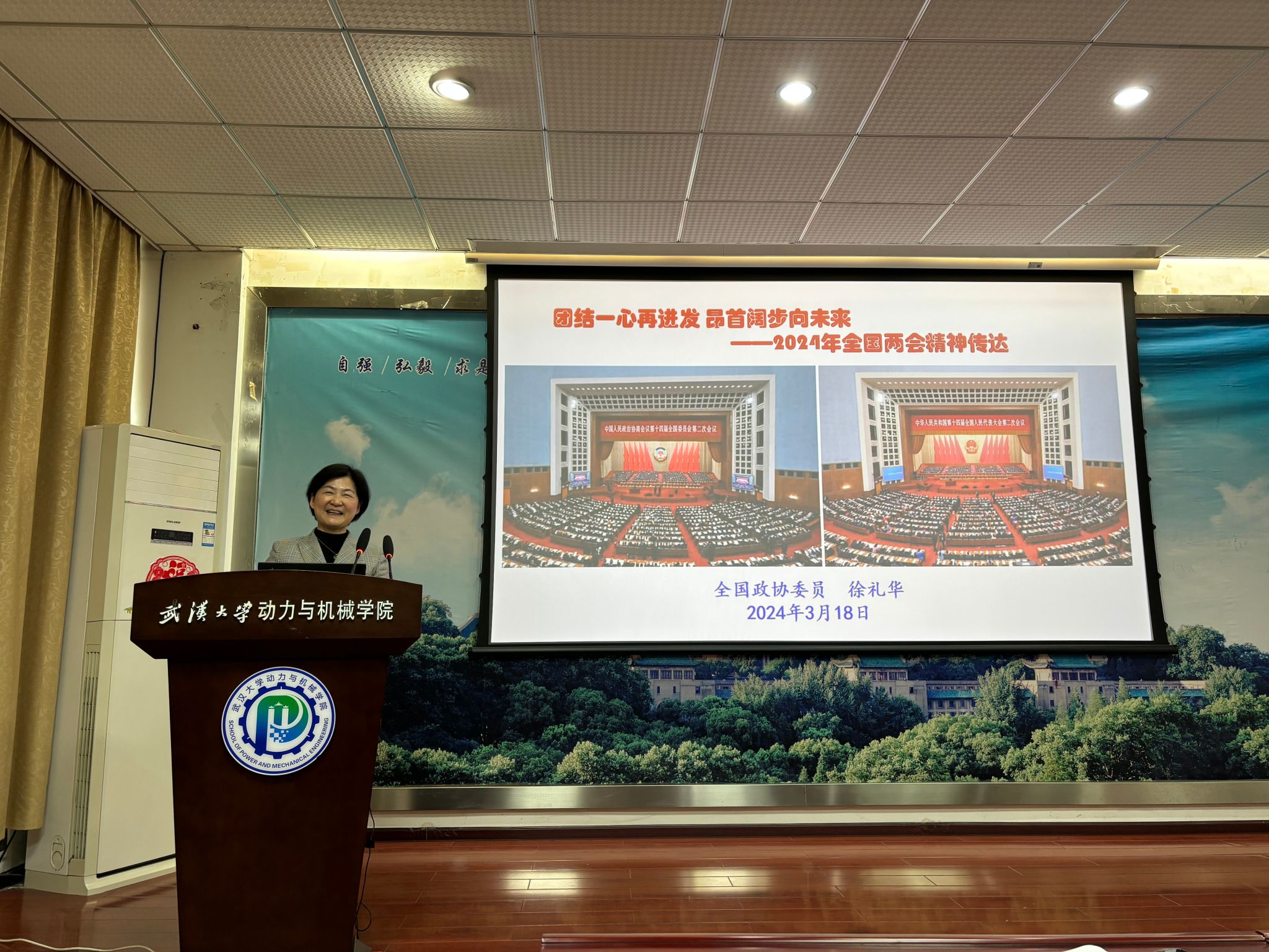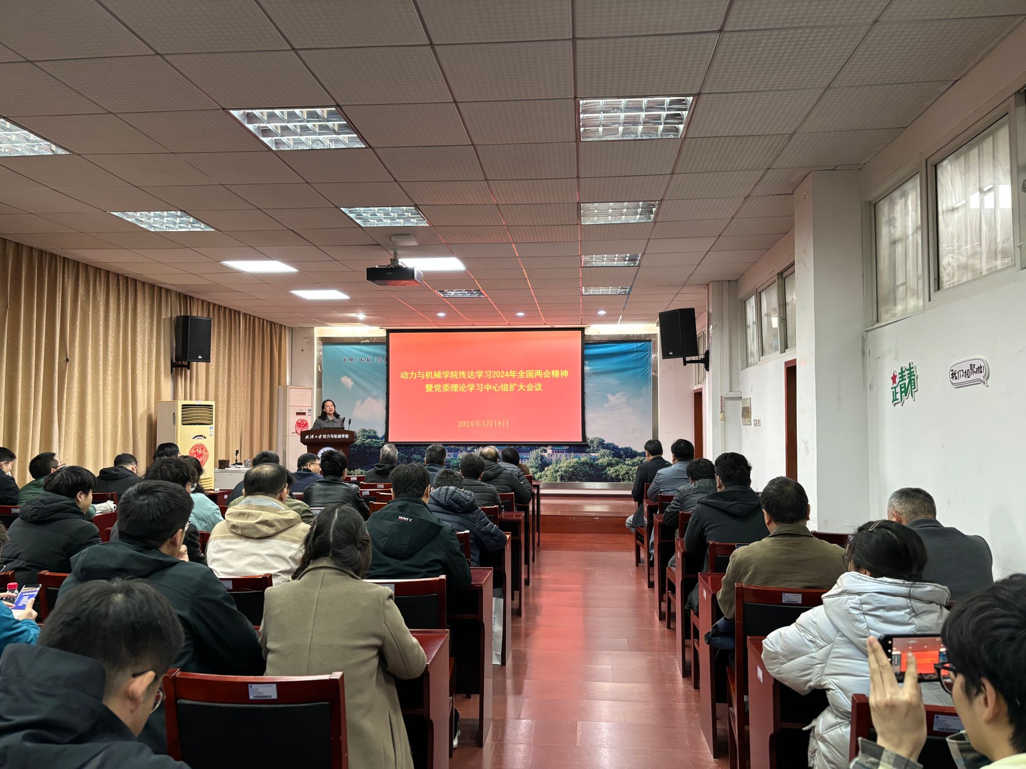 (通讯员:陈力瑞)3月18日,动力与机械学院召开传达学习2024年全国两会精神暨党委理论学习中心组扩大会议。会议邀请了第十四届全国政协委员、土木建筑工程学院徐礼华教授为全院师生党员讲述两会故事,传达两会精神。学院党委书记孙萍、副书记匡松、李坡、副院长肖晓晖、邓勇、侯佑民以及学院教师、学生党员等百余名师生代表出席会议。党委书记孙萍主持会议。