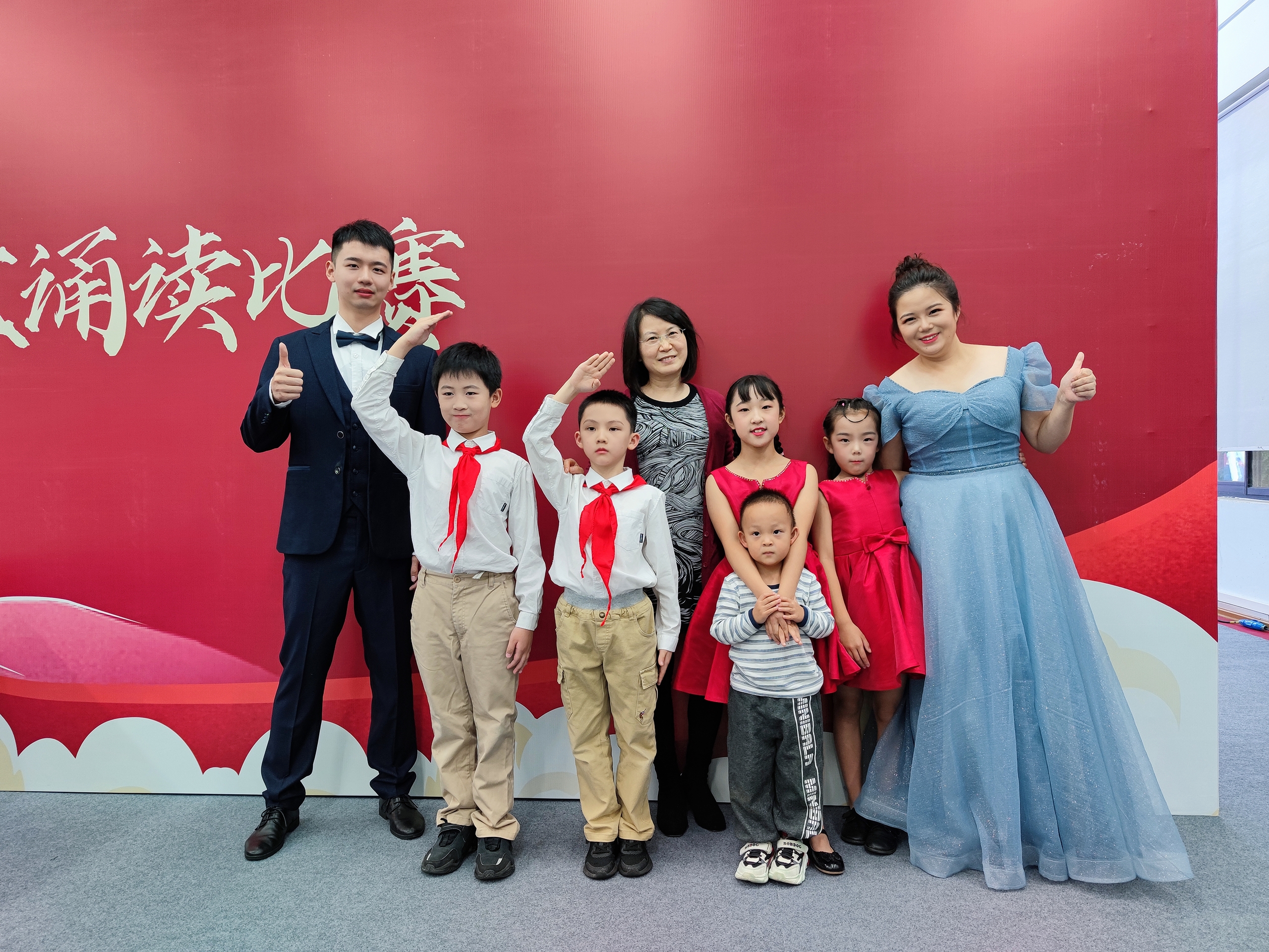 本网讯(通讯员:刘泽庭 审核:李琦、孙林歌)10月31日,武汉大学教职工“颂百年风华•传红色基因”书香飘万家诵读比赛隆重举行。我院由黄佳倩子、刘泽庭两位老师和定芸瑶、周辰睿、夏寰宇、黄传裕四位教职工子女深情演绎的配乐朗诵《盛世中国》获得现场评委及观众的高度肯定与热烈掌声,最终获得大赛优胜奖。