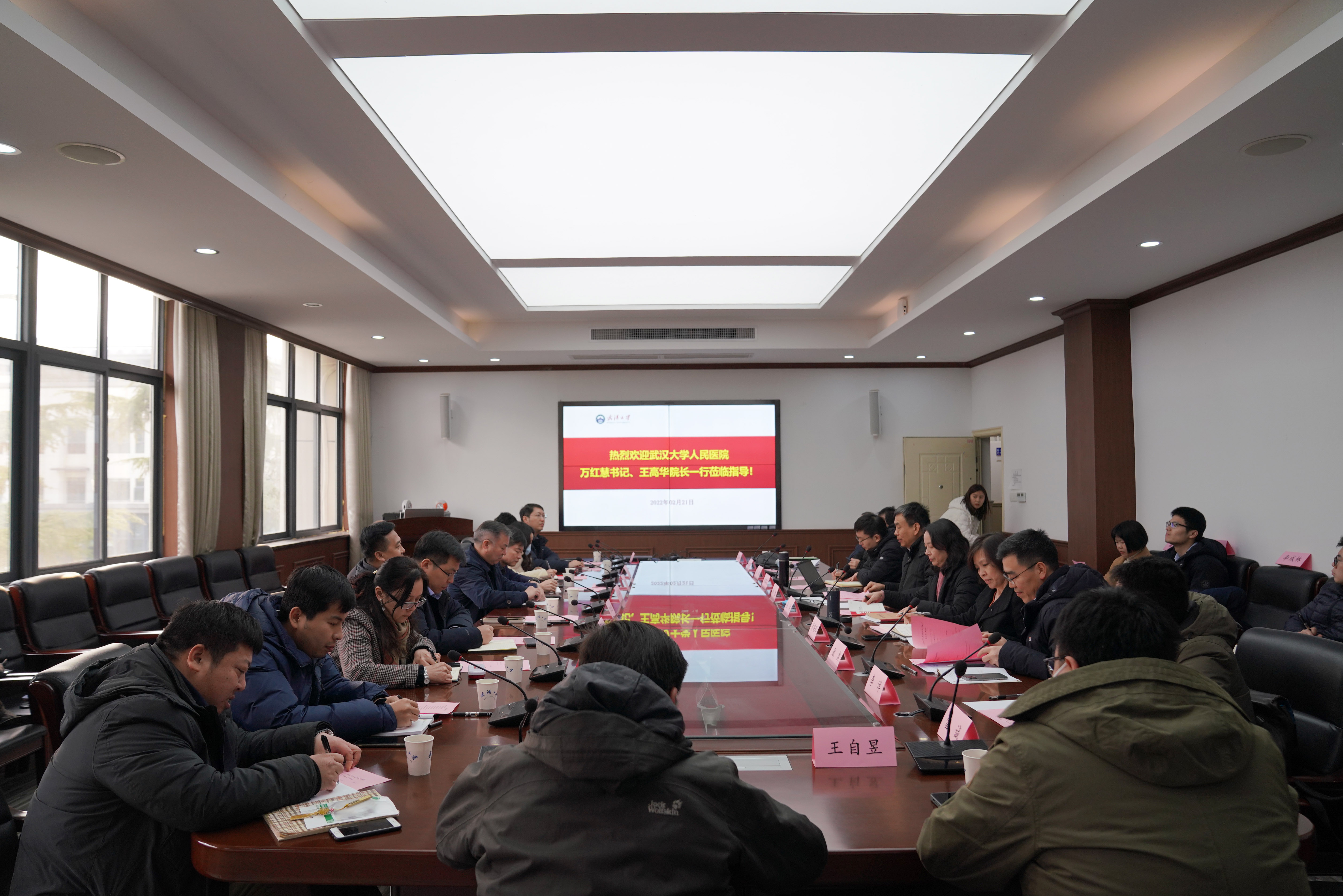 2月21日,武汉大学人民医院党委书记万红慧,院长王高华,副书记余锂镭,副院长李平湘、肖璇,党委组织部部长包安裕,科研处处长陈红一行来访我院研讨交流。学院党委书记孙萍,院长刘胜,副院长肖晓晖、康勇、胡耀武参加了研讨会。院长刘胜主持会议。