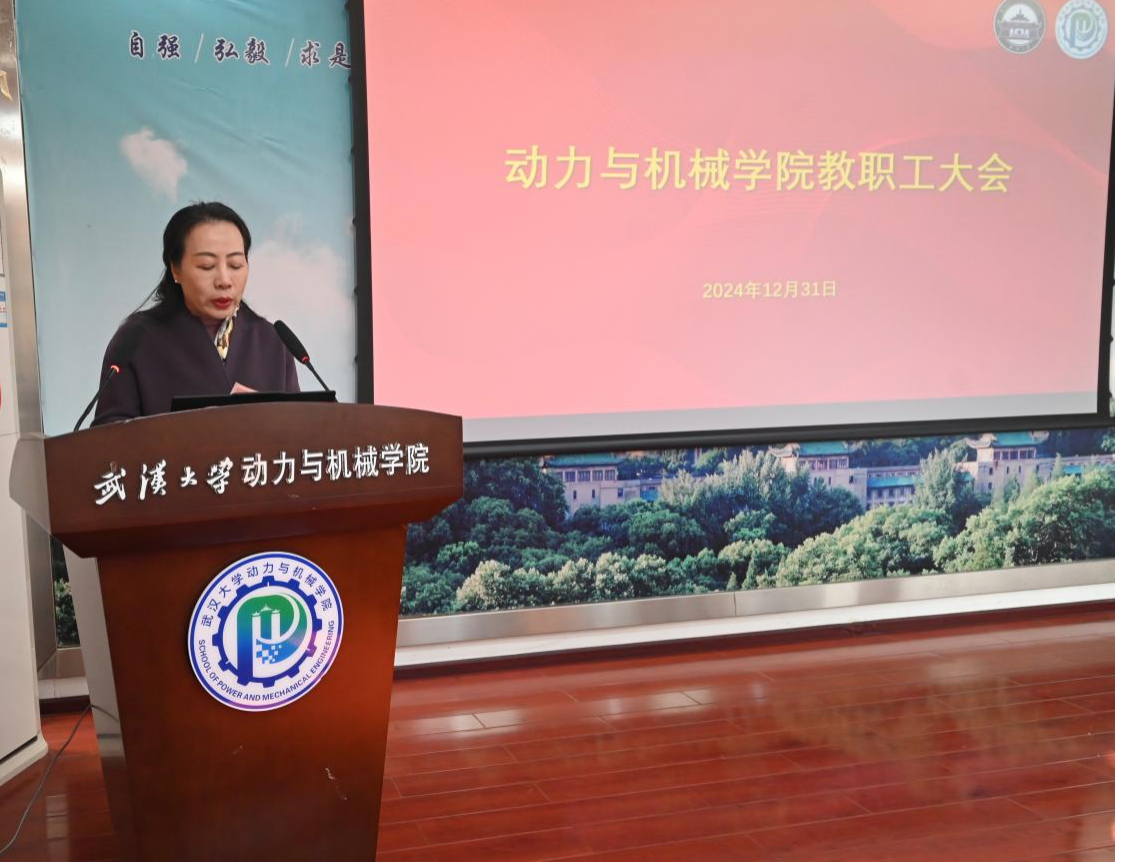 2024年12月31日下午15时,动力与机械学院在报告厅召开教职工大会,宣布干部任职。校党委副书记楚龙强、校党委常委、组织部部长姜星莉出席,学院领导班子成员和全体教职工参会,会议由院党委书记孙萍主持。