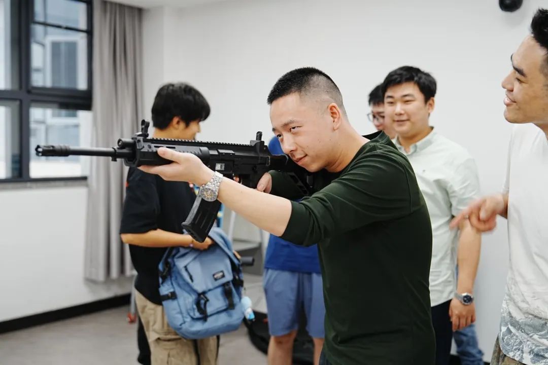 主教教室内,蛟龙特战队与武大军事爱好者协会、退役军人协会互动,特战队展示模拟射击系统,退役士兵现场重温军旅记忆,在沉浸式体验中深化“召之即来、来之能战”的使命共鸣。