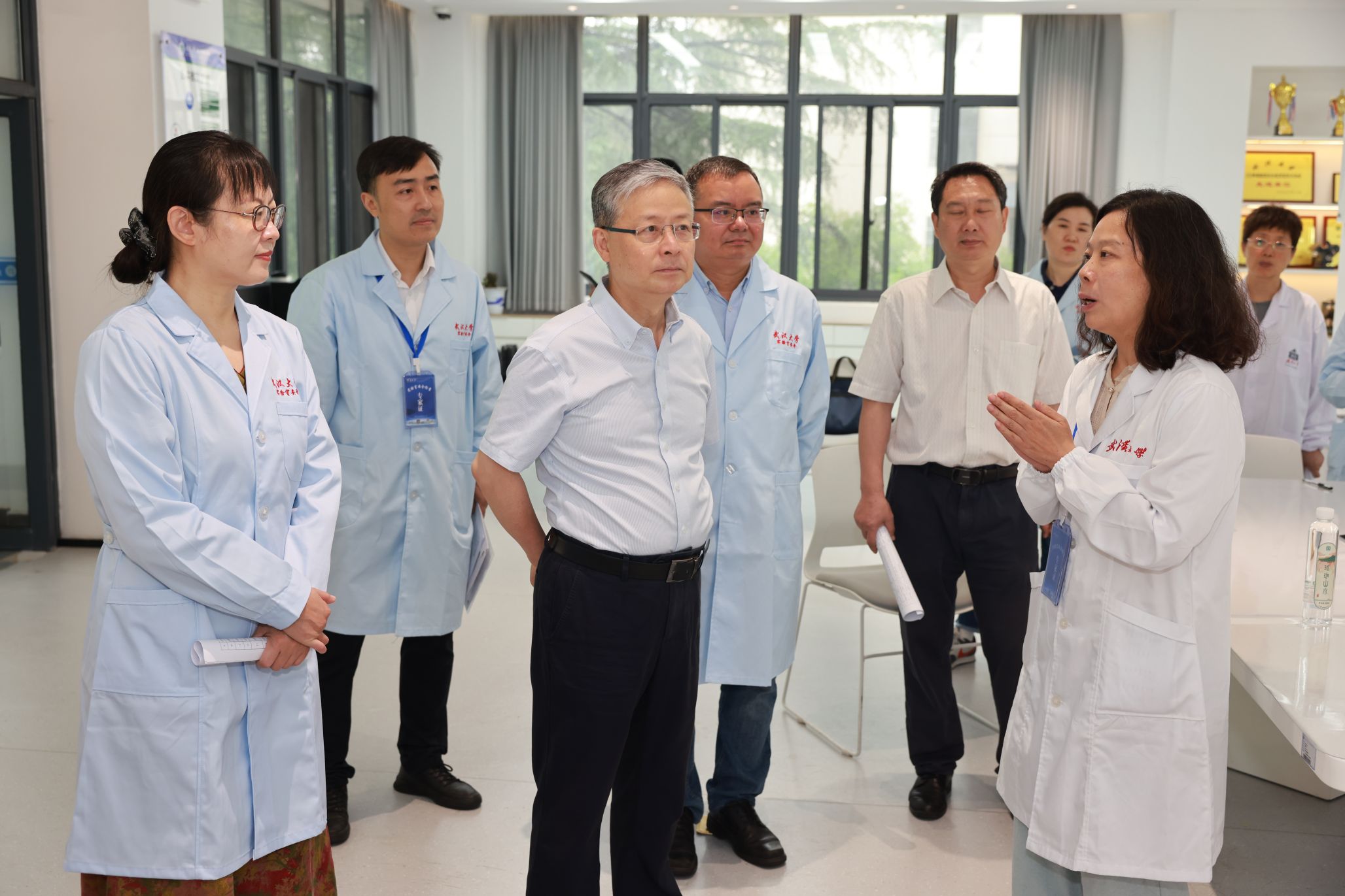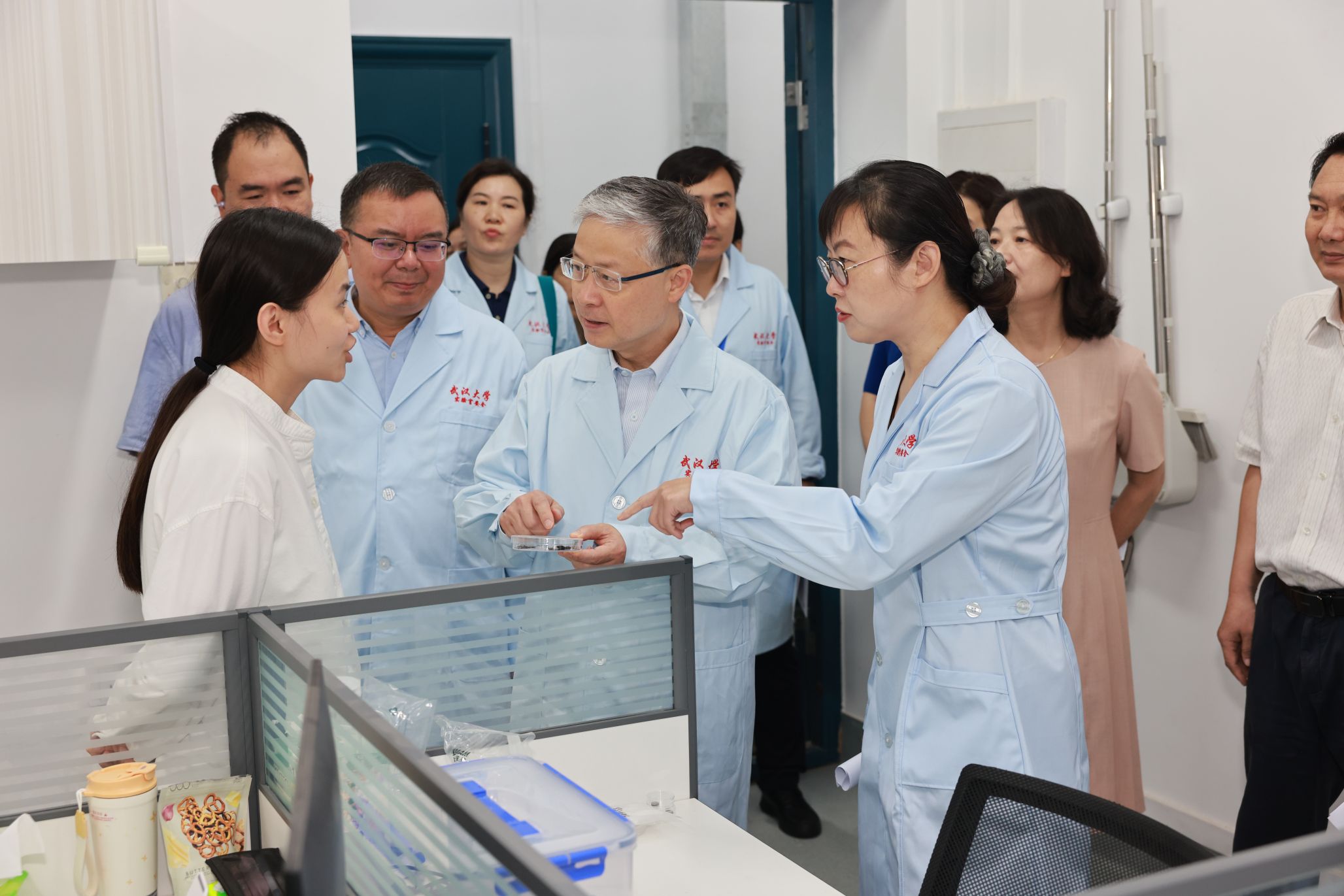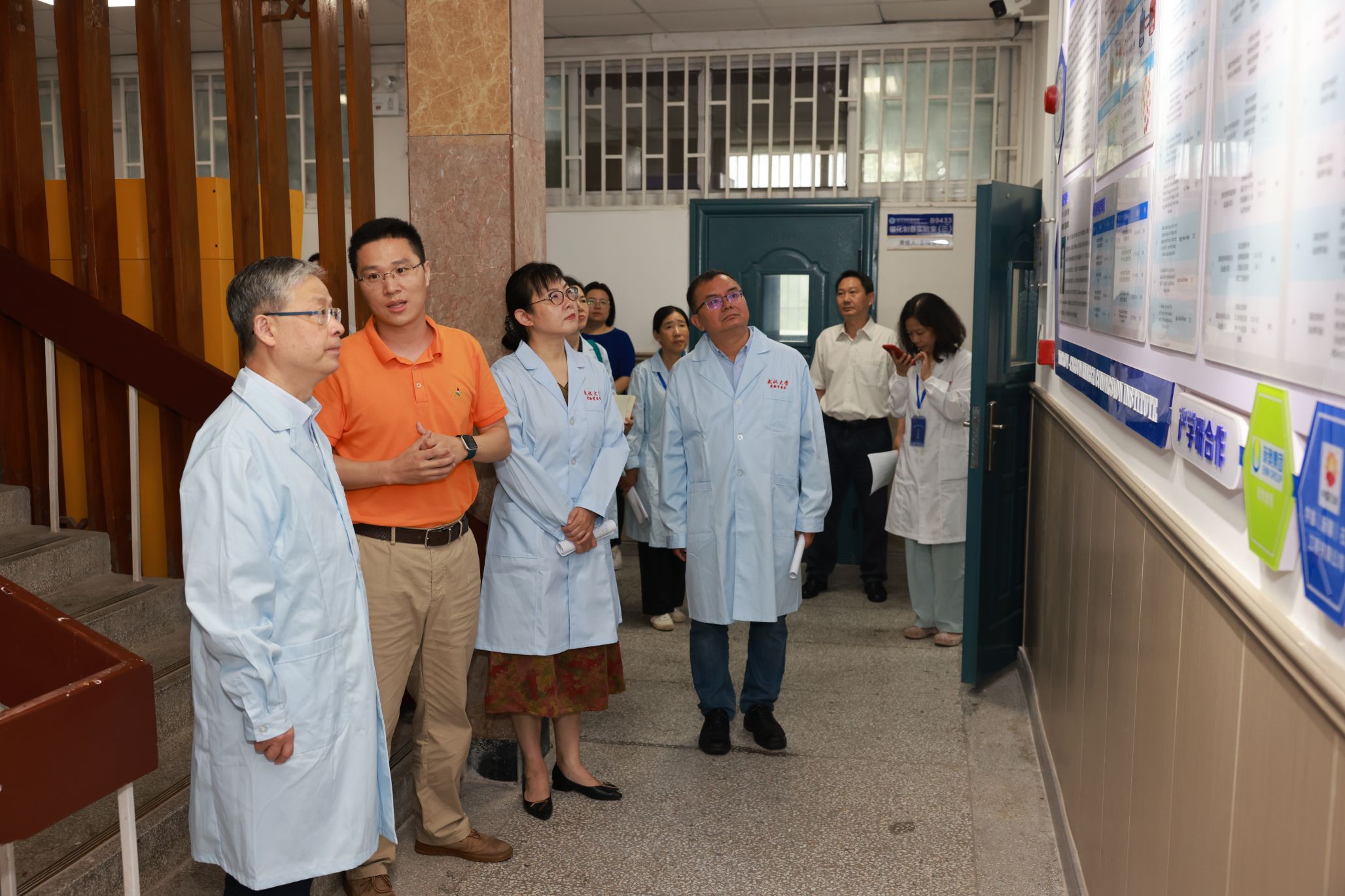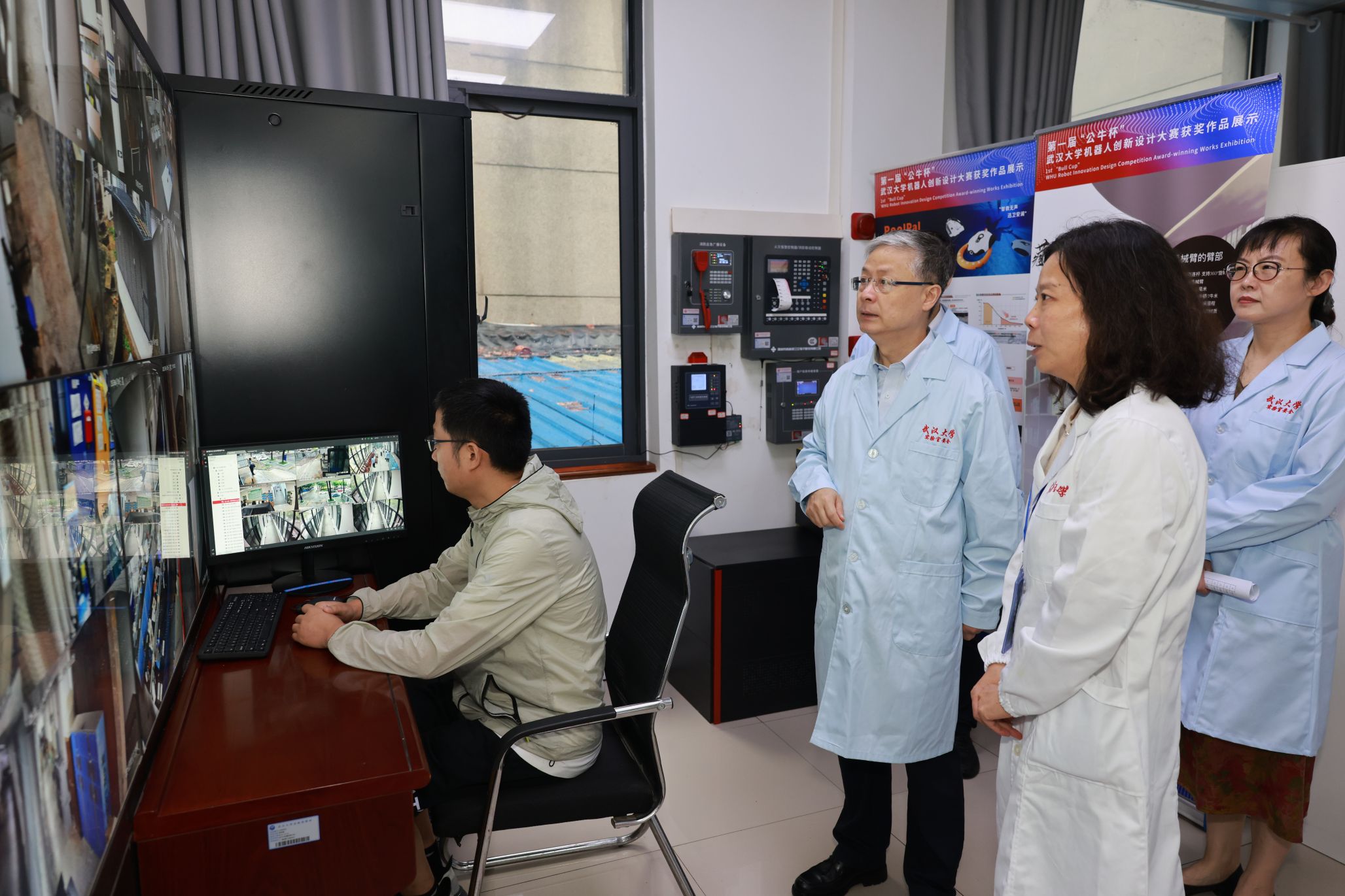 在智能机器人研究中心,黄泰岩与“天问”机器人团队师生亲切交流,听取了团队最新研发进展,充分肯定了团队在机器人工程领域做出的努力,鼓励团队就人形机器人的行动精密性和脚部动作仿生展开关键技术攻关。在青年人才杨婷的科研实验室,黄泰岩了解到她刚刚入职一年,对其实验室建设情况进行了详细了解,勉励其潜心科研,敢于创新,勇攀高峰。在实验教学中心,专家组听取了实验室与设备管理处张亮副处长介绍学院建成的全校第一个院级实验室智能安消一体化平台,检查了智能制造教学实验室和公牛实验室安全教育基地的安全运行状况。专家组还检查了成形制造研究所和学院集中供气气瓶间。