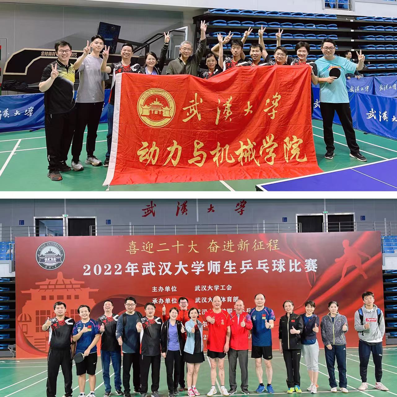 武汉大学2022年师生乒乓球比赛于10月15-16日在卓尔体育馆隆重举行,我院师生积极参与,选派了十位师生的强力阵容,小组赛顺利出线,取得了第九名的历史最佳战绩,赛出了风格,比出了水平。