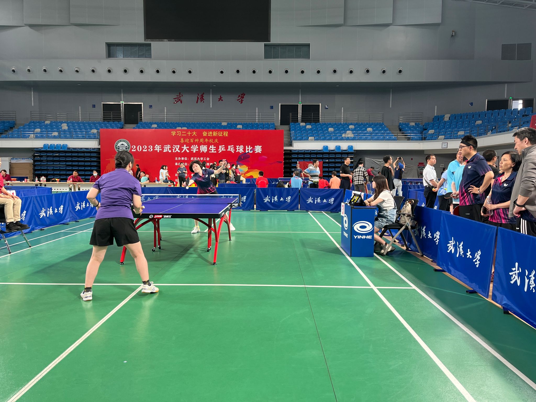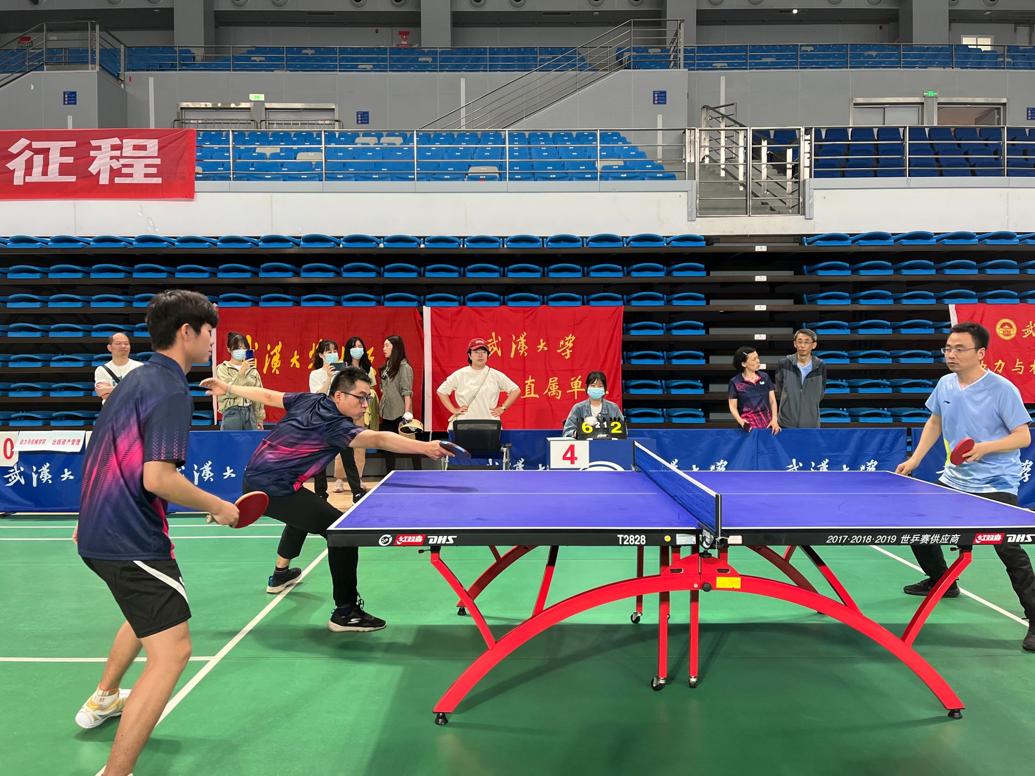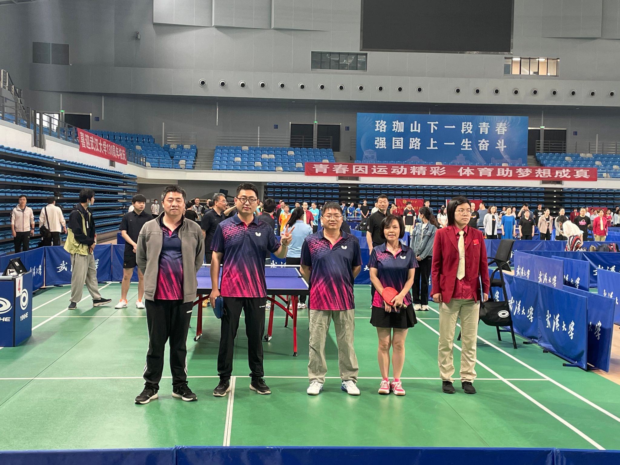 5月13日,学校首届师生乒乓球比赛在卓尔体育馆举行,由9名教职工和1名学生组成的动机学院乒乓球队参加了此次比赛。