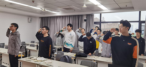 百年历史百年征程,党的风风雨雨又让我们回想起刚入团的激情。于是在刘源同学的带领下,全体同学起立,握紧右拳庄严重温入团誓词。同学们声音洪亮,慷慨激昂,这次的团日活动也在庄严的誓词声中落下帷幕。