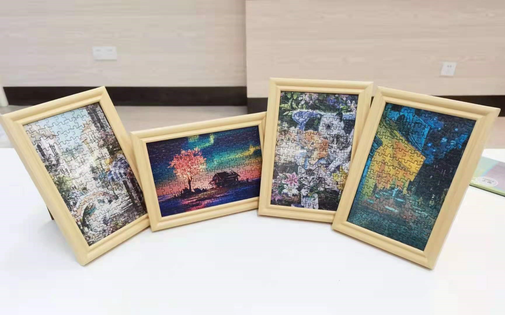 在趣味拼图活动中,平时忙忙碌碌的我们难得静下心来,和小伙伴们一起回顾年少时的欢乐。我们专注而安静地将每片拼图严丝合缝地嵌入独属于它的位置时,一种满足感与成就感油然而生。将零散无序的碎片慢慢还原为一个完整的小世界,我们专心致志地享受着一段心无杂念的平静时光。