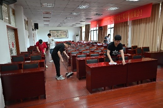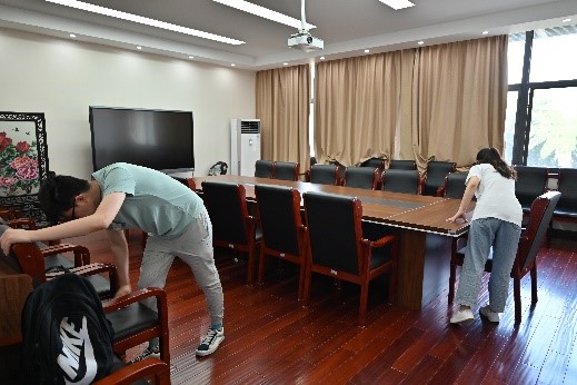 本次劳动教育的内容是对动力与机械学院学术报告厅、会议室、走廊等公共区域及九教周边地面环境进行打扫。