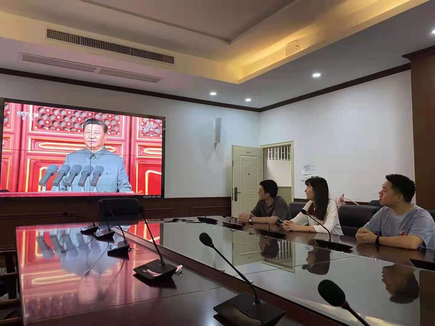 本网讯(通讯员:于昊楠 编辑:王伟 审核:刘泽庭)2021年7月1日上午,庆祝中国共产党成立100周年大会在北京天安门广场隆重举行,中共中央总书记、国家主席、中央军委主席习近平发表重要讲话。我院各研究生党支部积极响应号召,组织支部成员集中观看,支部部分党员参加学院集中收看活动,总计共有190余名研究生党员、70余名研究生积极分子参与了本次观看活动。