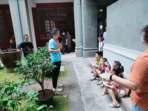 参观完大厅后,队员们来到了纪念馆的中厅游廊,这里一位讲解员正对着一群小朋友们介绍革命历史,这一幕给了队员们留下了极深刻的印象,革命精神正是如此传承给祖国的下一代。