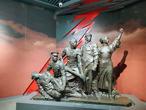 当日上午九点,队员们抵达纪念馆。在讲解员的带领下,队员们进入大厅学习八一起义及中国人民解放军从小到大,由弱到强的光辉历程。纪念馆成立于1956年,在1959年10月1日正式对外开放,其前身为“江西大旅社”,中国共产党在发动八一起义后以此为指挥中心在此举行了多场会议。馆内陈列着革命时期的珍贵文物,如战士们使用过的武器、佩戴过的臂章。这些物件讲述着革命先辈们筚路蓝缕的艰苦历程,激励着我们不忘初心,奋力前行。