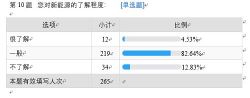 据采访结果显示,采访对象大部分对新能源定义缺乏准确理解,且对相关政策并无了解。对新能源了解较多者为自身或亲属朋友从事新能源相关行业者以及部分常住于一、二线城市者,体现出较明显的地区差异。而这与目前我国新能源普及情况相吻合,具有新兴行业正处于高速发展阶段而鲜明的发展较不均衡的特点。同时,绝大部分采访对象认为有必要对新能源由定义到相关政策、发展现状等多方面进行科普宣传。
