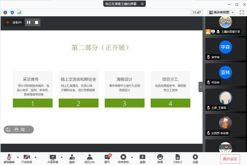 22日20:00,动机团委实践队线上交流会暨辩论会正式开始。院团委书记、实践队指导老师黄佳倩子,辩论会技术指导黄力雄以及杨康华、陈宝华、李龙龙、何愉、马力、胡晓丹等主要学生干部出席本次会议并担任辩论会评委。