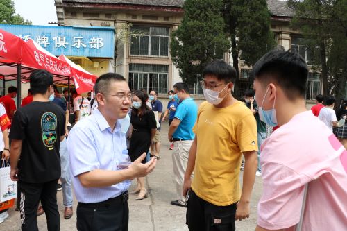 新流汇入,生机勃勃。领导们也于百忙之中抽身出来,来到招新点慰问我院新生和迎新工作人员。