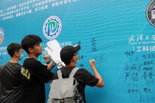 在完成注册并领取校园卡、新生大礼包等物资的操作后,新生们纷纷来到签名墙前,在院徽下郑重签上姓名,并留下正式进入大学后第一张照片——这是一场新征程的起点。