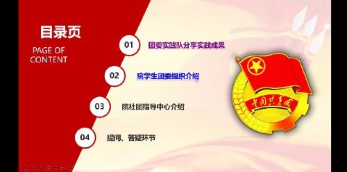 宣讲会初始,2019级团委成员王鑫作为会议主持简要介绍了学院的四个团学组织,并宣布了会议流程:先分享团委实践队新能源调研的实践成果,后让院学生团委组织、社指的各个部门依次自我介绍,最后是答疑环节。