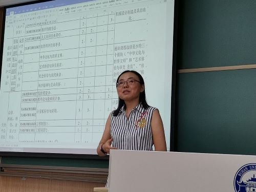 介绍完学科优势后,余亮英老师又对两种专业的课程选择进行了介绍。她就往年的选课出现的问题提出建议:“同学们要选择‘一条龙’课程,实践课与理论课要相匹配。”她希望同学们按体系学习各种课程,形成应有的知识框架,以更好地应对未来毕业时面临的难题。她风趣地表示:“只要最后不会吃亏,你也可以不听‘老人言’。”