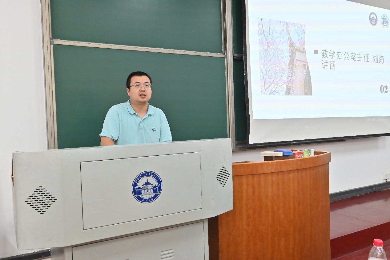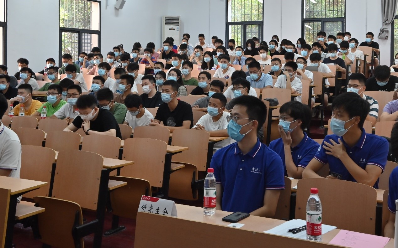 本网讯(通讯员:陈飏 编辑:郭思谊 审核:刘泽庭)为帮助新同学更好了解研究生生活,更好开展研究生教育工作,提高新生安全意识与学术道德修养,我院于2021年9月12日上午在工学部五教召开2021级研究生新生年级大会,会议严格落实防疫要求,参会师生全程佩戴口罩。院党委副书记李琦、学生办公室主任刘海、教学秘书金洁、研究生辅导员刘泽庭、优秀老生代表刘歆欣、院研究生会主席团和部长团以及全体2021级研究生新生参加了本次会议。会议由刘泽庭主持。