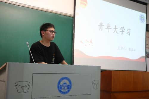 张汉柱主持团支部第一次会议进行。在洪亮的共青团团歌声中,会议正式开始。张汉柱详细讲解了“三会两制一课”活动的基本规范,同时,他声情并茂地分享了自己参与团学工作的相关经历,体现出学生干部所应具备的责任感及交际能力,不仅让大家学习到部分开展团学活动工作的技巧,而且给予了新一届团支部工作人员十足的信心。