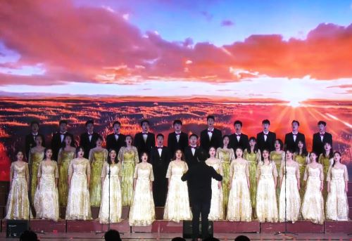 “远望婀娜似那空中楼宇,近见壮阔赛那玉宇琼楼。”我合唱团成员优美动听的歌声裹着一幅幅画卷,向听众们徐徐展开。悠软绵长而又铿锵有力的歌声带领观众们走进灯火里的中国,走进这个令我们无比骄傲自豪的祖国——壮哉,言我河山大美;叹哉,诉我成功不易;幸哉,言我奋斗无悔!
