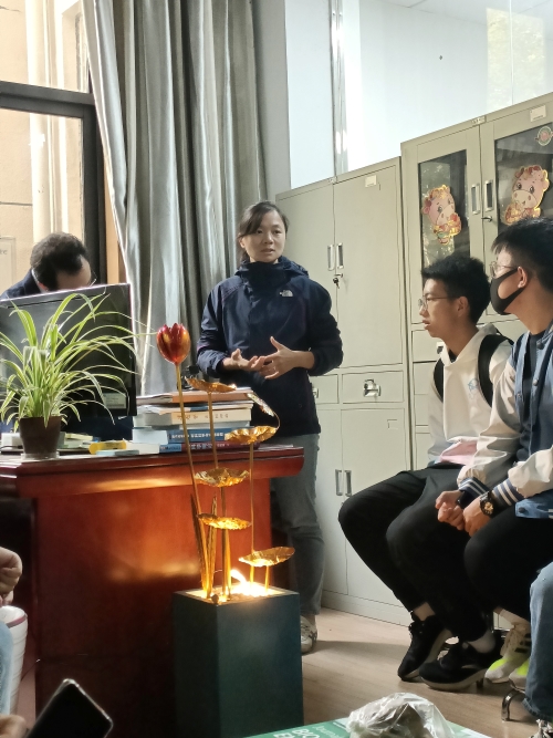 随后,薛龙建老师让张学长向同学们介绍了实验室内另一位老师的研究方向,说明了利用微针做糖尿病检测对医学临床的意义。而后又邀请了胡平老师来与同学们交流,胡平老师简要地介绍了她研究的无损检测技术对科研的意义。