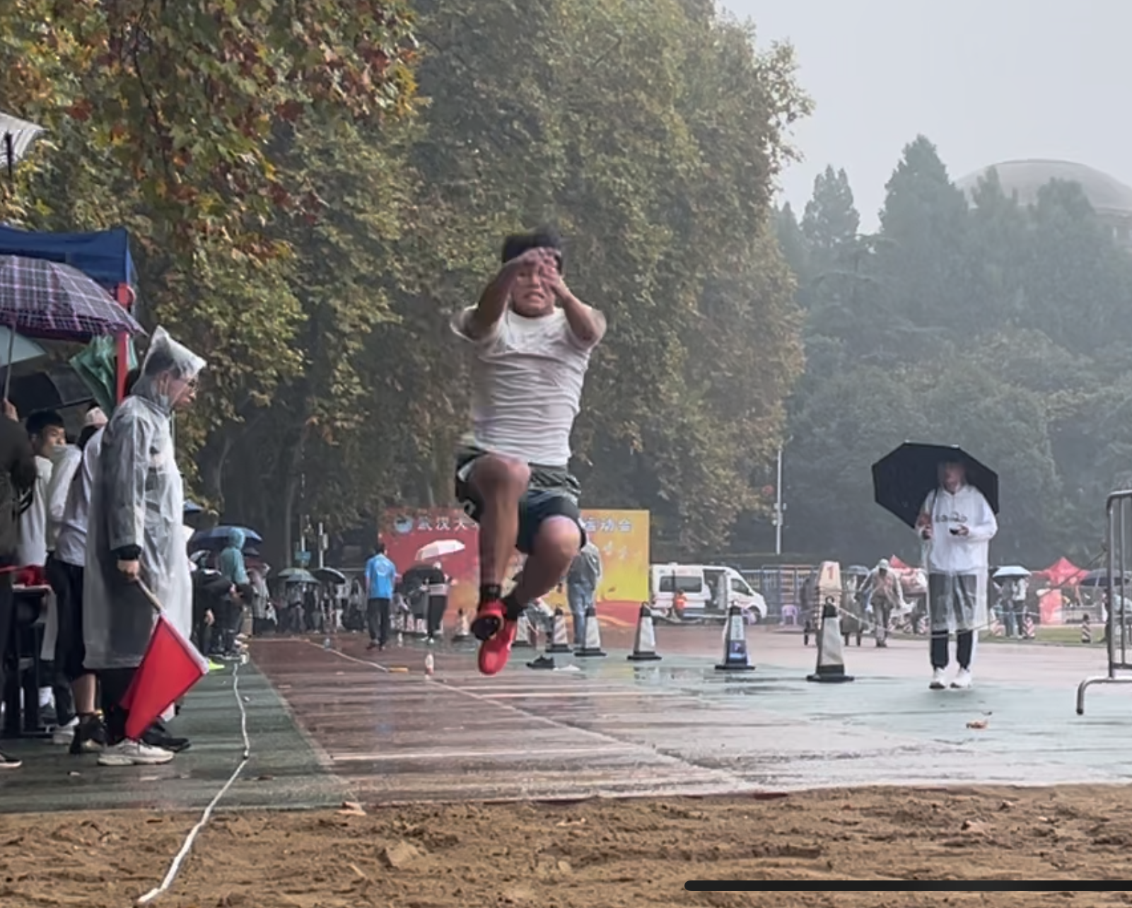 落雨是勇气的背景,力量是奋力拼搏的姿态。苏晓峰与江苏超在大雨中迎接运动会跳远决赛的挑战,每一次蓄势待发的助跑,每一次拼尽全力的起跳,都展现出动机健儿的英姿和风采。这次拼博的经历将是人生路上弥足珍贵的回忆。