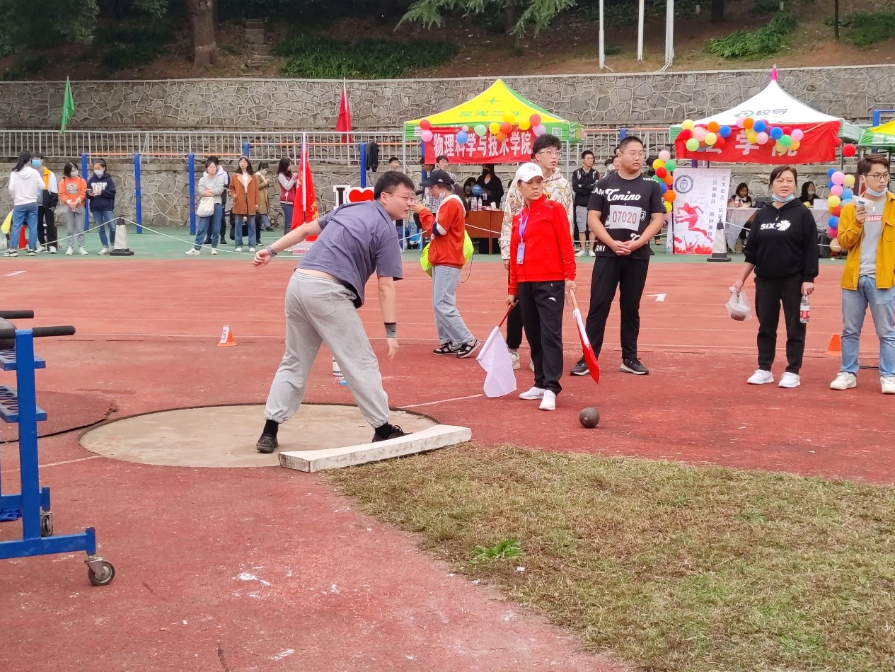 力拔山兮气盖世,这也许是男人最高的赞美吧!! 我院的陈鑫和王一波同学披襟斩棘,奋力一搏,把七公斤的铅球抛出9.18米和9.76米,分别取得男子铅球第二名和第五名的好成绩。