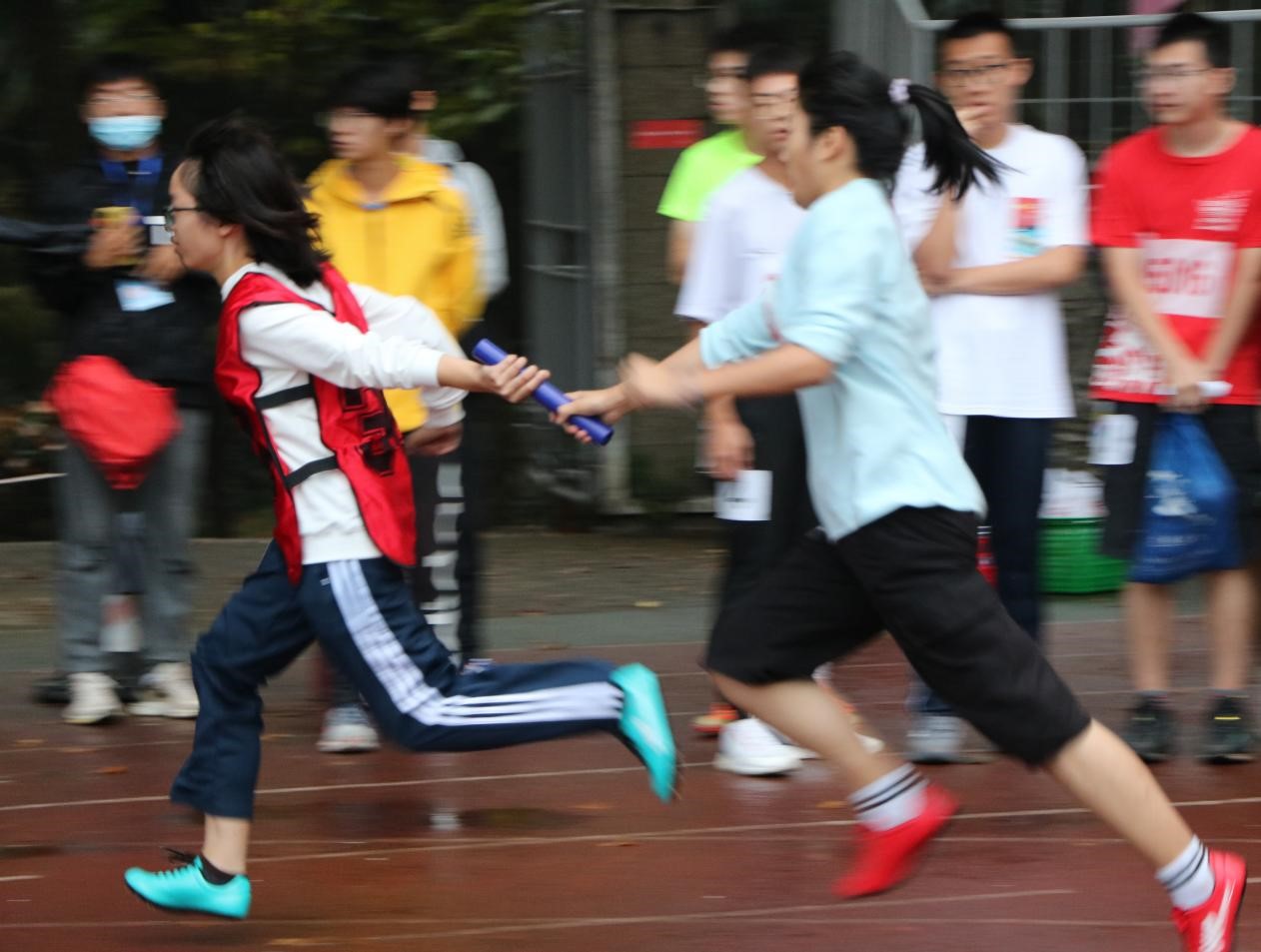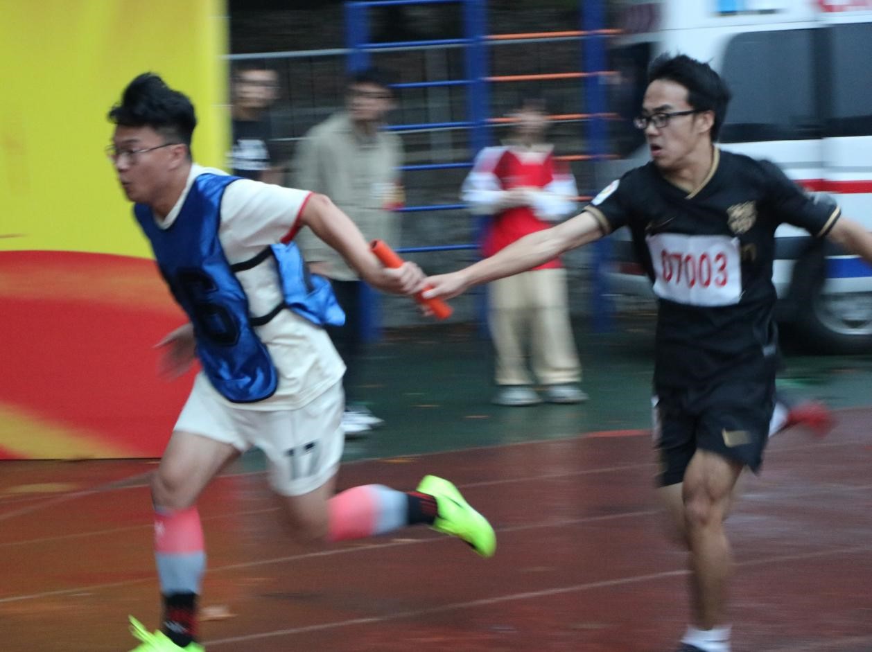 一声令下,二十个身影在一条跑道上交替,手中的接力棒传递勇气和力量,无暇四顾,脚步不停,心中装满必胜的信念