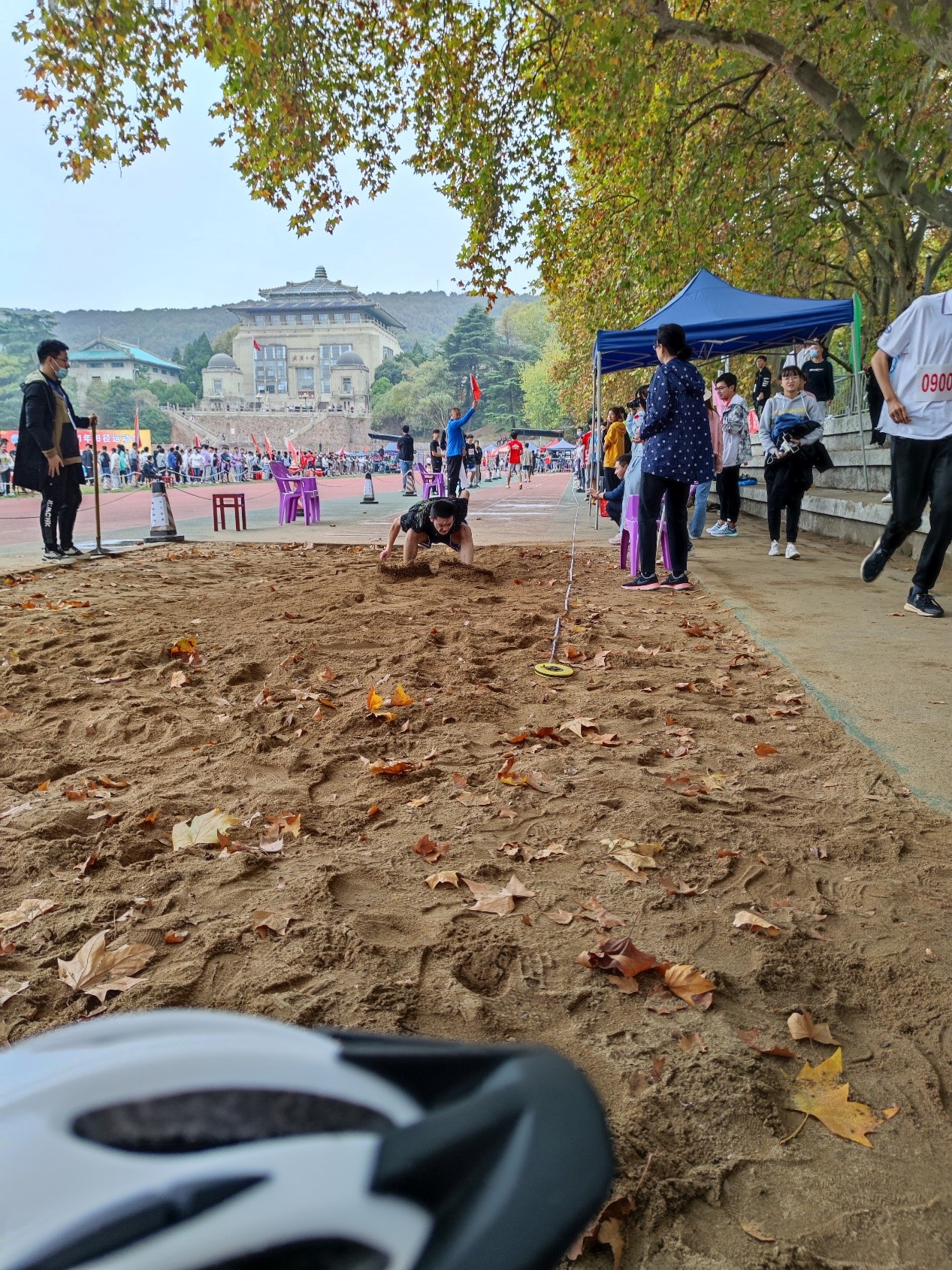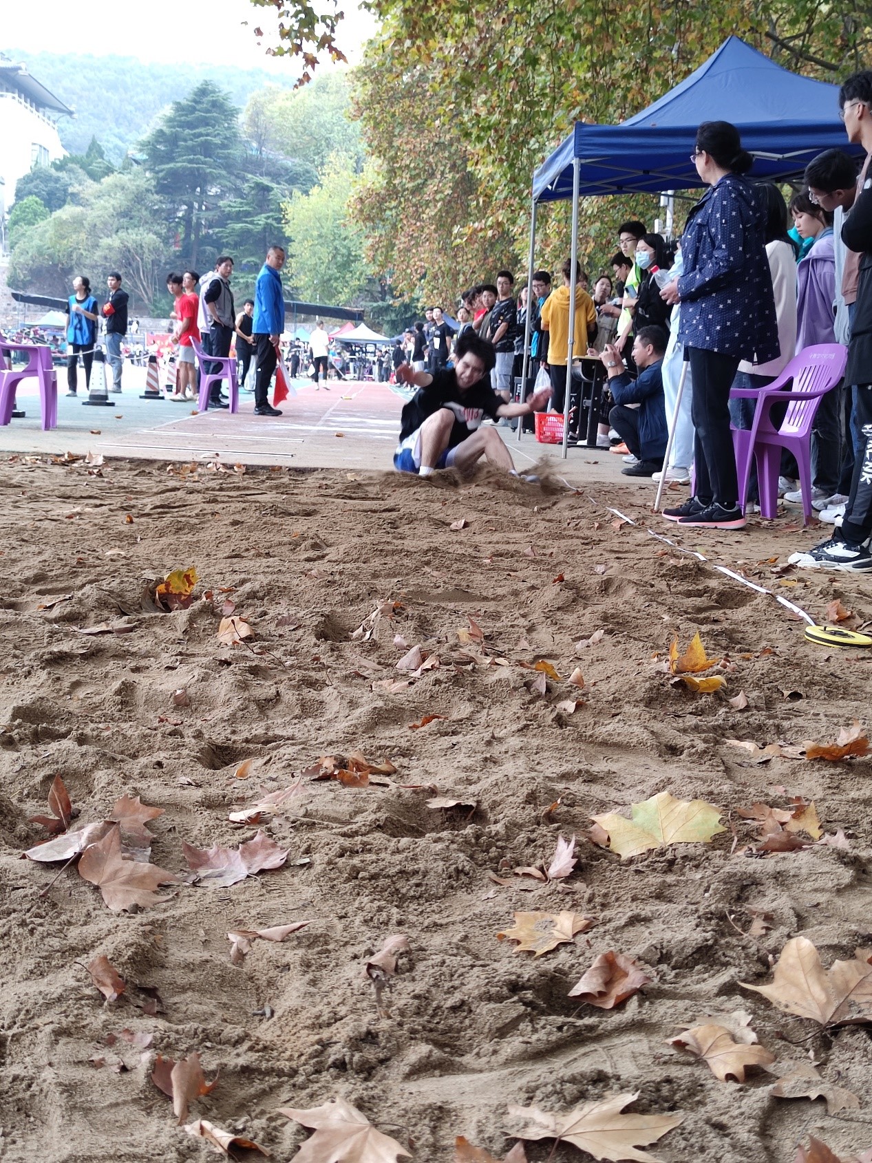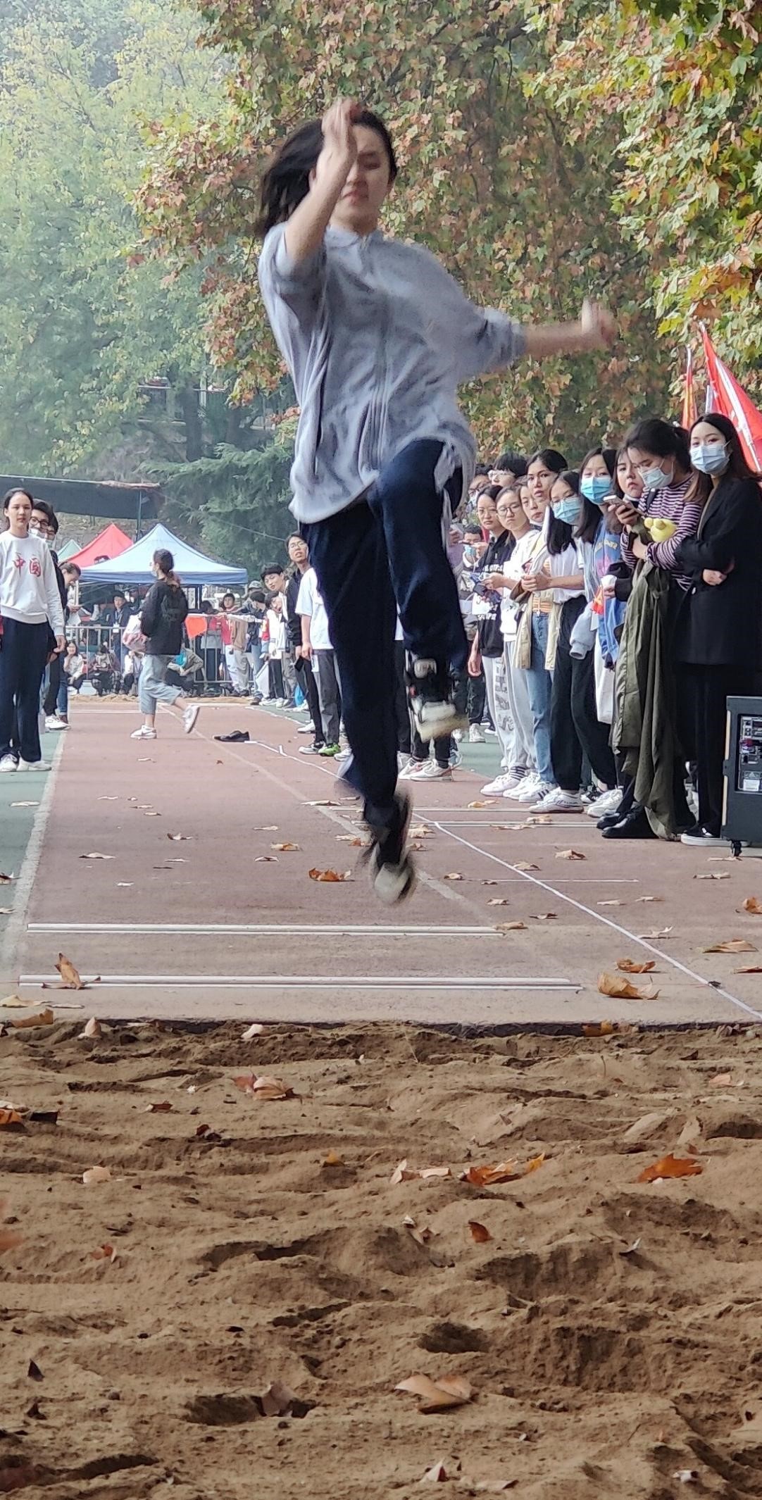 离弦箭似的助跑,蚂蚱似的起跳,空中的走步表演,引起阵阵惊叹,落地的瞬间,你触到了沙的柔软,荣誉永远属于你。我院的李可和李文喆同学自信地冲刺,优雅地落地,跳出了10.74米和10.7米的成绩,分别取得第十八名和第十九名的好成绩。