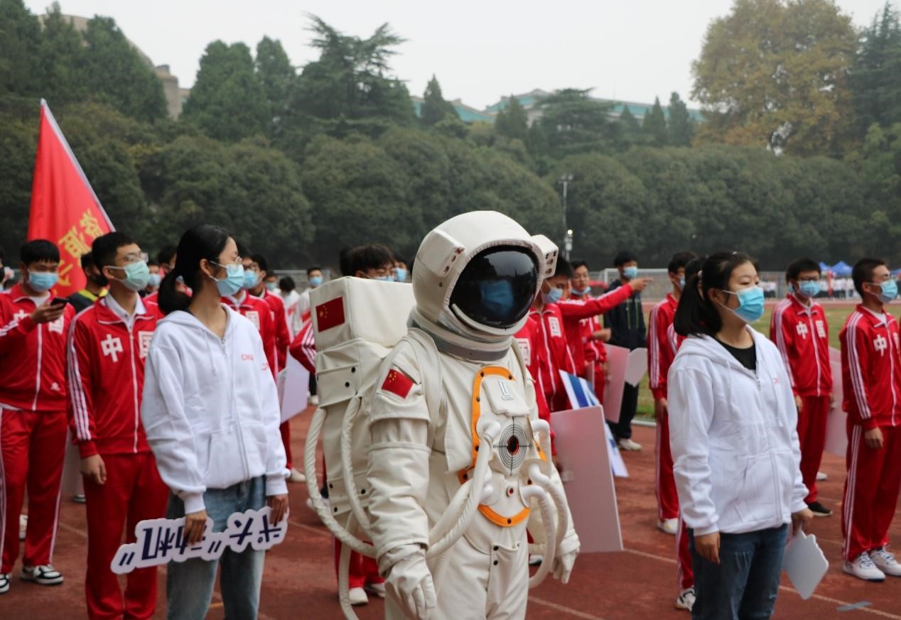 上九天揽月,下五洋捉鳖。动机学子怀凌云壮志,迈坚定脚步,整齐如一,走进场地。