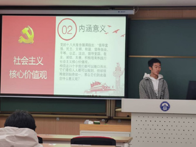 动力与机械学院工科试验班13、21、22三班联合举办了此次班会,罗梓亮同学依次从国家层面,社会层面,公民层面分别解释了社会主义核心价值观的内容,使同学们更好地理解了社会主义核心价值观的基本内涵和意义,理清了核心价值观与核心价值体系的关系。