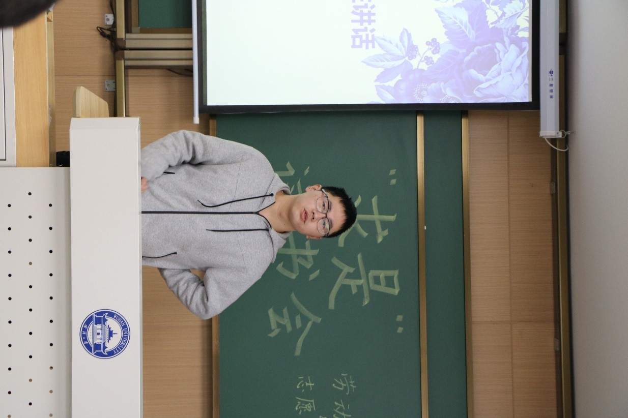 接着正式进入读书分享环节,第一位上台分享的同学是王卓同学,他向大家介绍了杨朔所写的《荔枝蜜》。“为自己,为别人,也为后世子孙酿造着生活的蜜。”通过分享文章中的几段话,王卓阐述了自己对于这篇散文的理解。王卓分享完后,剩下十二位同学依次上台,分享了《雷锋的故事》、《天工开物》、《平凡的世界》、《钢铁是怎样炼成的》等书籍,邹振成、黄紫晨、张梦、李宇豪和柏天裔等同学更是结合了自己志愿服务的经历,用朴实的话语诠释深刻的道理,也让这次读书分享会更加贴近生活。