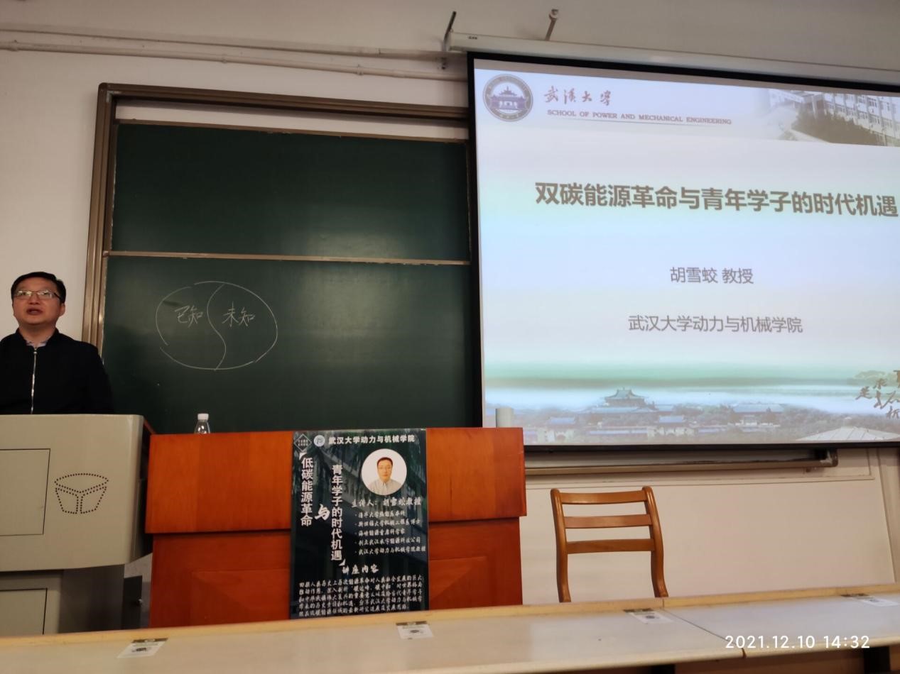 (通讯员:李流馨、宣俊伟)12月10日下午,动力与机械学院在工学部6教301举行新生专业教育系列讲座,主讲人为我院动力系教授胡雪蛟,讲座题目为“双碳能源革命与青年学子的时代机遇”,旨在帮助我院2021级新生了解能源领域的最新研究成果,更好地认识专业。