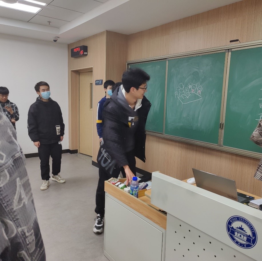 活动第三项——你画我猜。为考验团员们是否已经充分了解雷锋故事,团员们分成五个小组,主持人给出与前面几位团员所讲的雷锋故事对应的图片,各小组选出若干成员进行作画并由余下成员回答画中对应的是哪个雷锋故事。作画成员大多从故事中最令人触动的细节处入手,简单几笔就将故事重现,各小组都很快答出了图画对应的故事,也再次对这些故事加深了印象。
