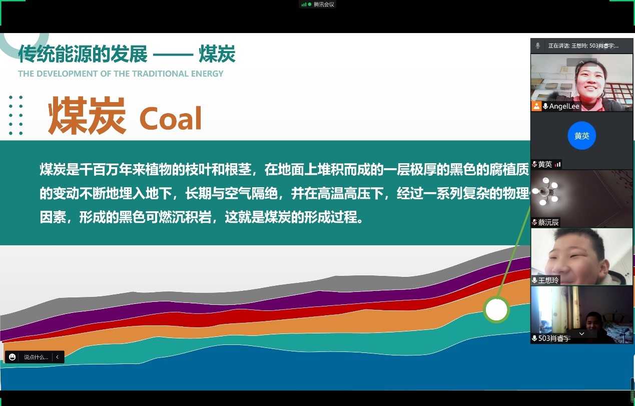 接着,李安琪从人类利用能源的历史脉络讲起,向同学们介绍了传统能源的发展,并详细讲解了煤炭与石油的形成与应用。在介绍石油之前,她为同学们讲解了沈括在《梦溪笔谈》一书中的对石油的描述。当看到 “此物必大行于世”的预言时,同学们对古人的发现感到惊奇;而当看到“盖石油之多,生于地中无穷,不若松木有时而竭”的判断时,同学们又认识到了古人对科学探索的时代局限性。她将文言文学习与科普知识结合,串联古今的同时,丰富了课程内容,也让同学们了解了我国古代科学探索的里程碑。