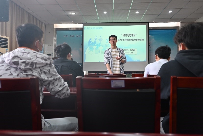 本网讯(通讯员:代朝镛 摄影:田志强 审核:刘泽庭)为进一步做好学院研究生就业工作,帮助研究生尽早完成职业规划、明确就业方向,我院于5月11日上午在学院学术报告厅举办了“动机职航”----职业生涯规划互动体验讲座。本次讲座主讲人为院学工办副主任、研究生辅导员刘泽庭。为落实疫情防控要求,提高互动体验学习效果,本次讲座采用小班教学的模式,共有10位来自不同专业年级的研究生参加。