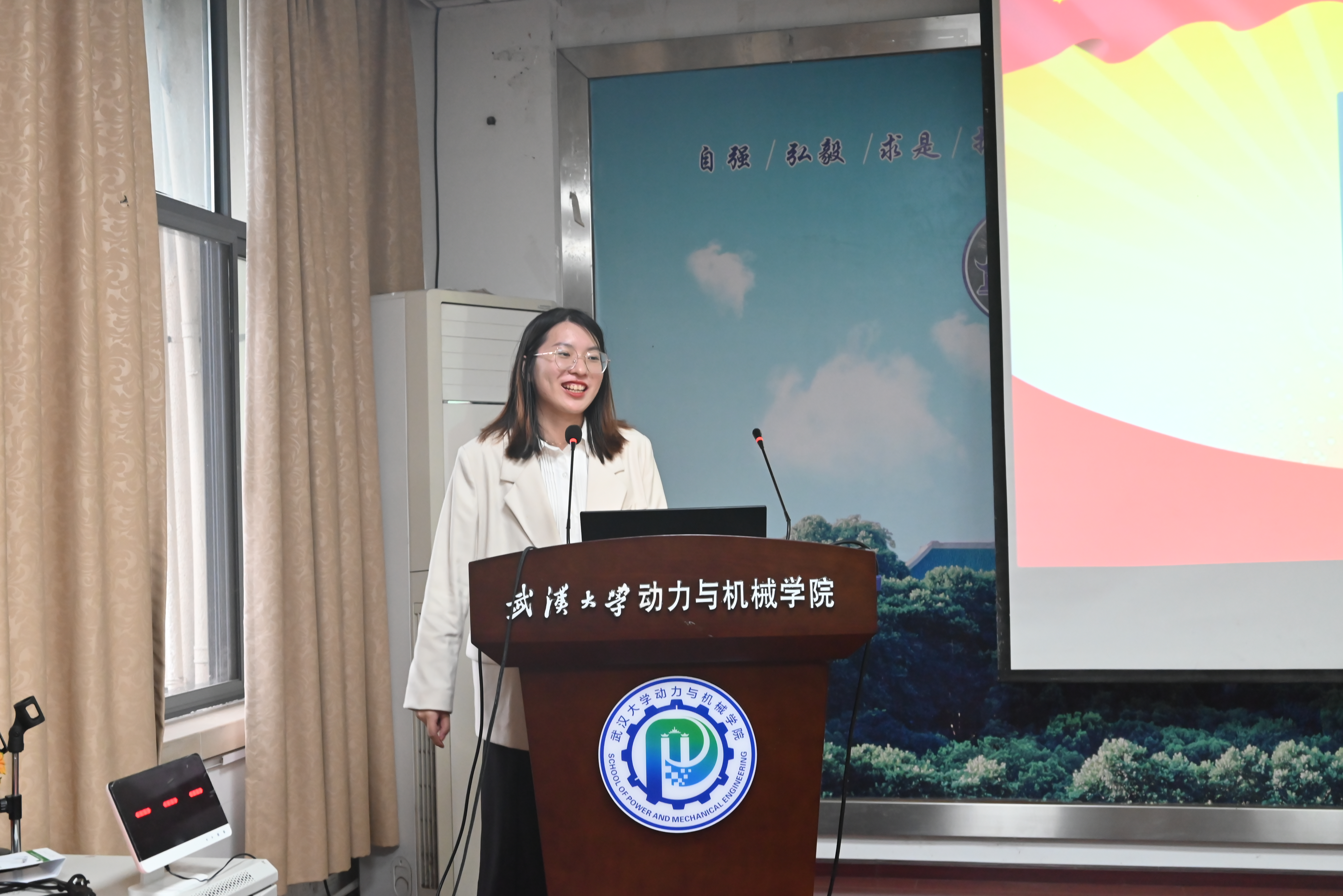 本网讯(通讯员:柳无双 编辑:于昊楠 审核:刘泽庭)5月19日下午,“青春心向党,献礼二十大”武汉大学研究生党支部风采大赛动力与机械学院初赛在我院学术报告厅举行。院党委副书记匡松、工业科学研究院研究生辅导员肖潇、动力与机械学院研究生辅导员刘泽庭、研究生党总支委员、党支部书记以及参赛研究生党支部成员参加此次活动。本次活动还特别邀请了上届大赛决赛一等奖党支部委员、计算机学院兼职辅导员朱锐婕,武汉大学研究生党建研究会常务理事曹佳琳作为特邀嘉宾莅临现场指导点评。比赛由研究生党总支宣传委员王豪斌主持。