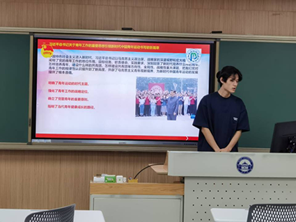 随后牛卓为全体团员总结了习近平总书记关于青年工作的重要思想。一个有远见的民族,总是把关注的目光投向青年;一个有远见的政党,总是把组织的基础植根于青年。100年来,我们党始终高度重视青年、关怀青年、信任青年,始终代表广大青年、赢得广大青年、依靠广大青年,团结带领一代又一代青年为实现中华民族伟大复兴的中国梦接续奋斗,推动中国青年运动始终与国家同呼吸、与人民共命运、与时代齐奋进,书写了百年党史中闪光的青春篇章。习近平总书记以马克思主义政治家,战略家的深邃视野和宏大格局明确了青年运动的时代主题,强化了青年工作的战略定位,确立了党管青年的重要原则,指明了当地青年健康成长的途径。这激励着全体团员树立青年兴则国家兴,青年强则国家强的人生信念,共青团将会培养出一大批先锋分子,每一位团员都希望成为其中一员。