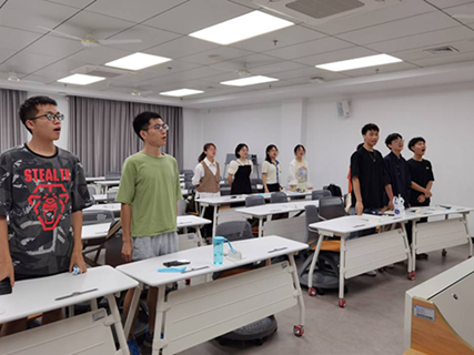 活动伊始,13团支部全体团员合唱团歌,全体团员昂首挺胸,齐声高唱,格外响亮的歌声中充满了对中国共青团成立一百周年的激动与敬仰。
