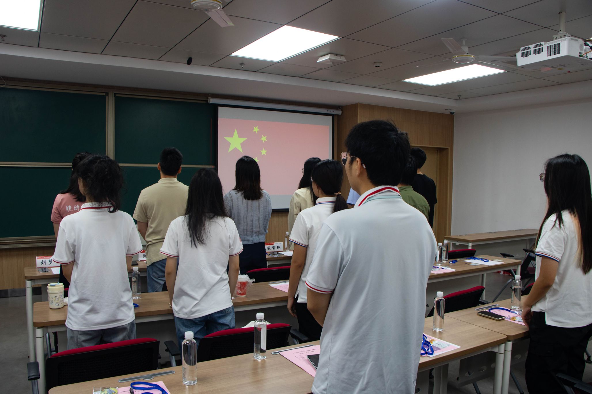 大会第一项,全体起立,齐声高唱中华人民共和国国歌。