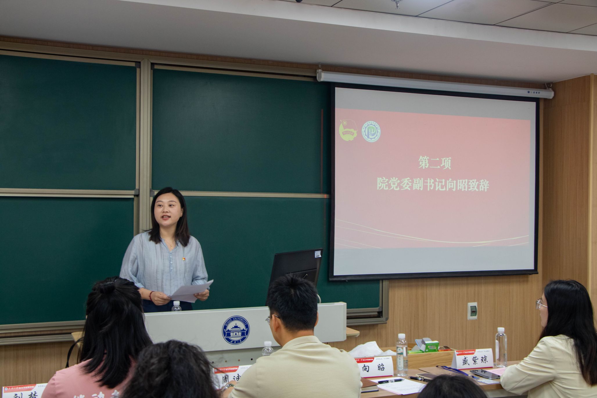 大会第二项,动力与机械学院院党委副书记向昭致辞,对过去院团委的工作做了高度的肯定与认可,并对未来院团委的工作提出了建议与期望,希望团员青年们能够在实现中华民族伟大复兴的道路上奋勇争先。